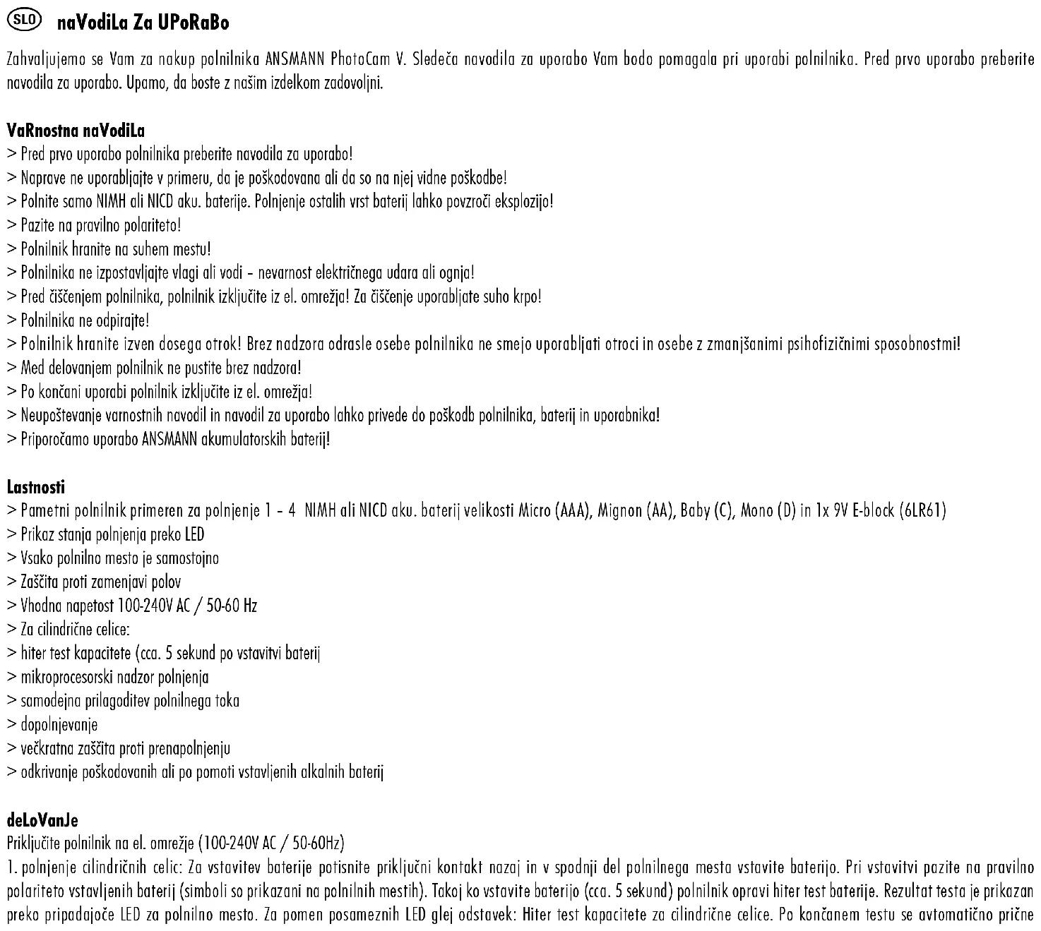 PhotoCam V - Polnilec baterij ANSMANN - Brezplačna navodila za uporabo
