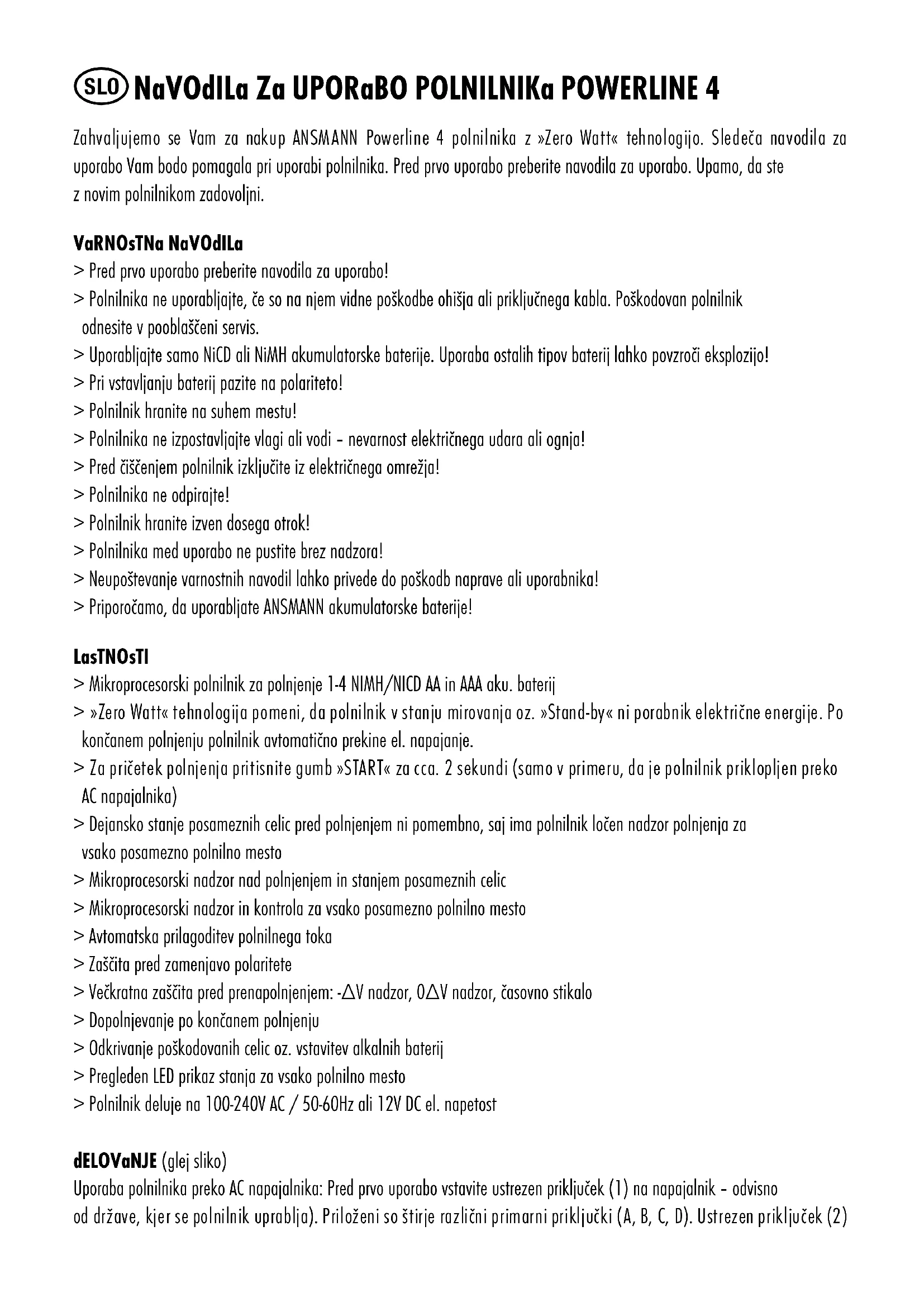 Powerline 4 Zero Watt - Polnilec baterij ANSMANN - Brezplačna navodila za uporabo