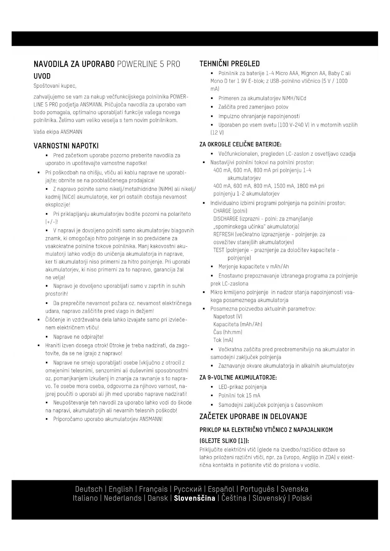 NAVODILA ZA UPORABO Powerline 5 Pro ANSMANN