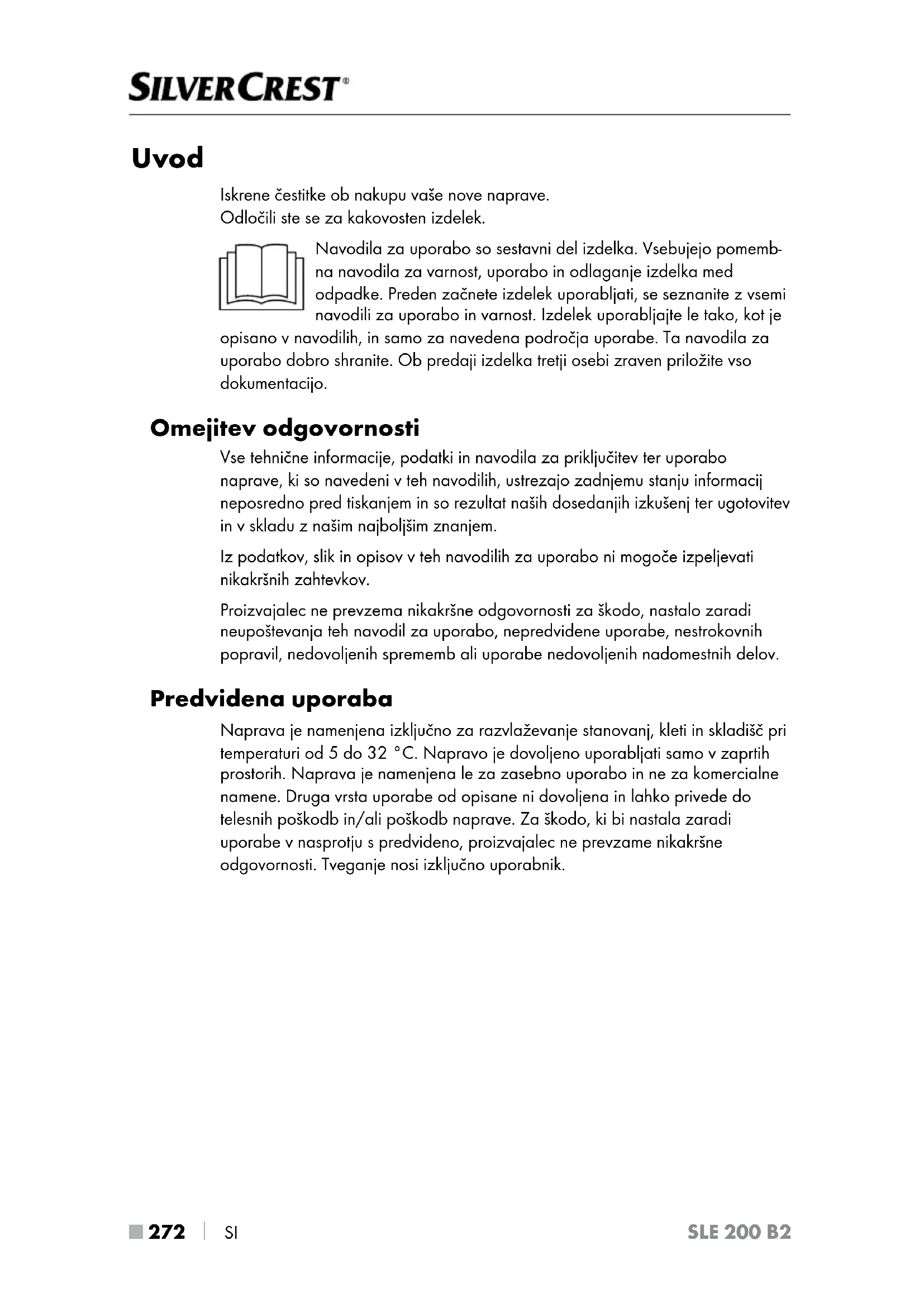 NAVODILA ZA UPORABO SLE 200 B2 SILVERCREST