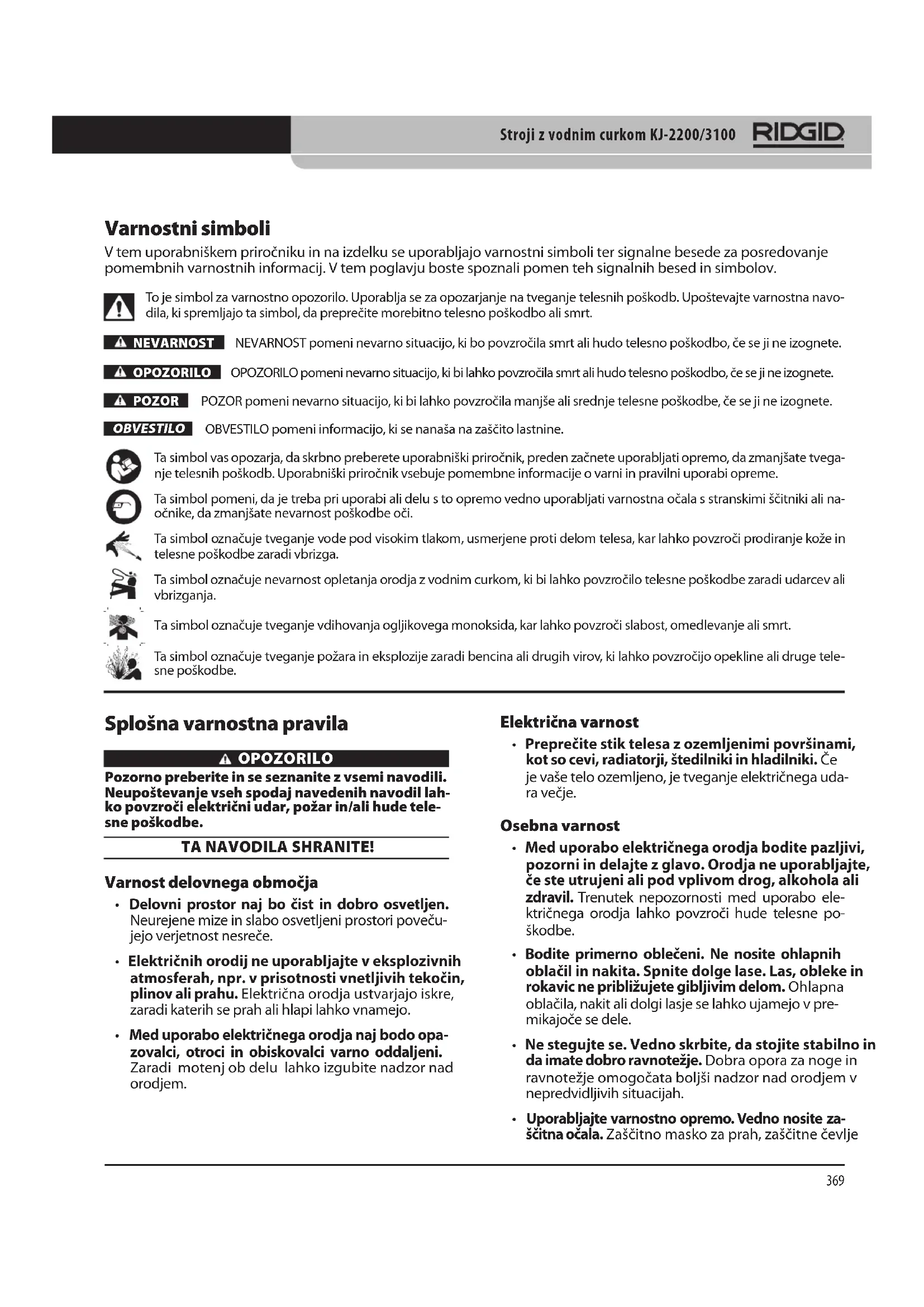 NAVODILA ZA UPORABO KJ2200 RIDGID
