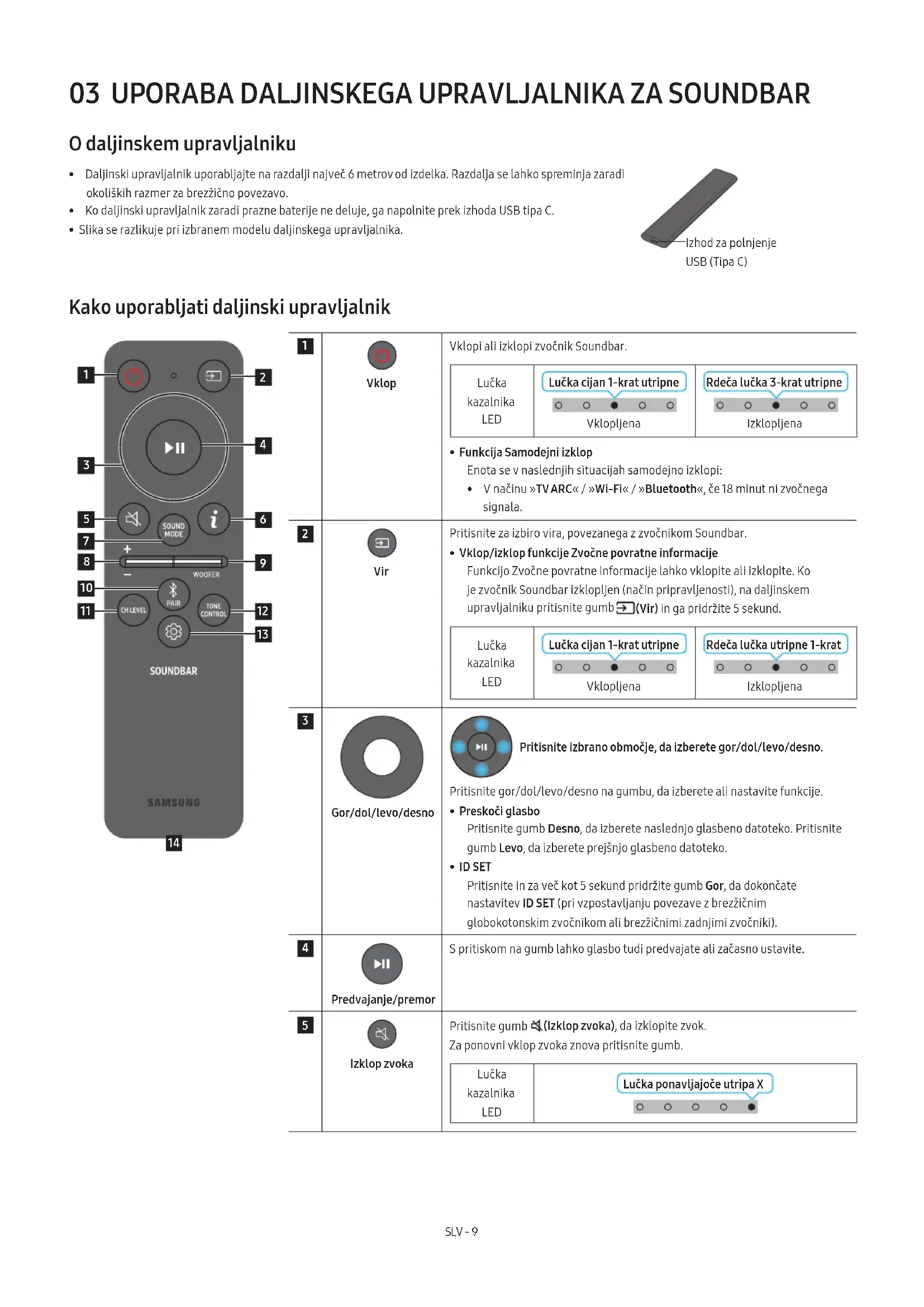 03 UPORABA DALJINSKEGA UPRAVLJALNIKA ZA SOUNDBAR
