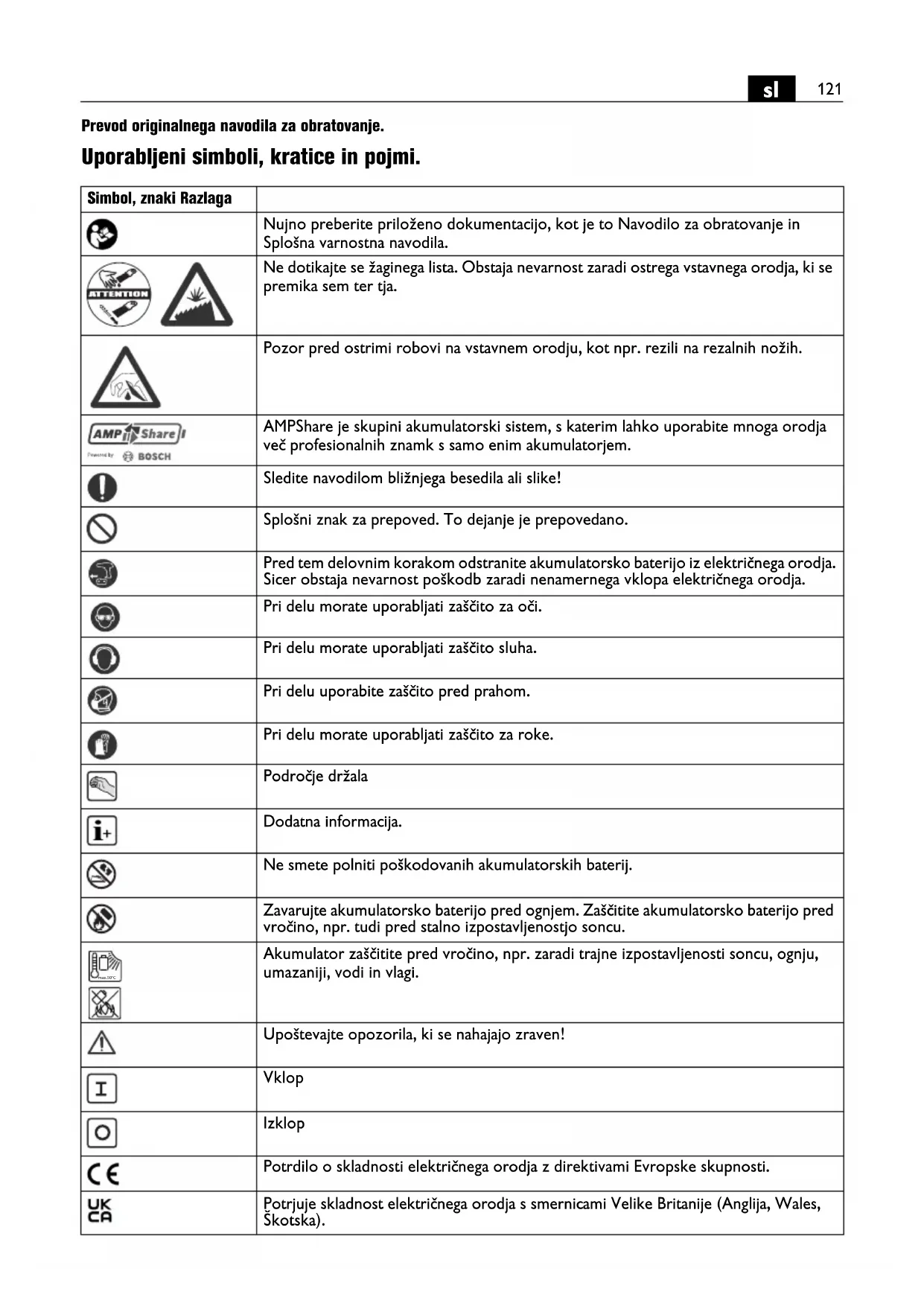 S izpraznjenimi akumulatorji ravnaje previdno. Akkumulatorji so vir nevarnosti, ker lahko povzrocijo zelo visok tok katkega stika. Tudi ko se zdi, da so litij- ionski akumulatorji v izpraznjenem stanju, se nikoli ne izpraznijo v celoti.