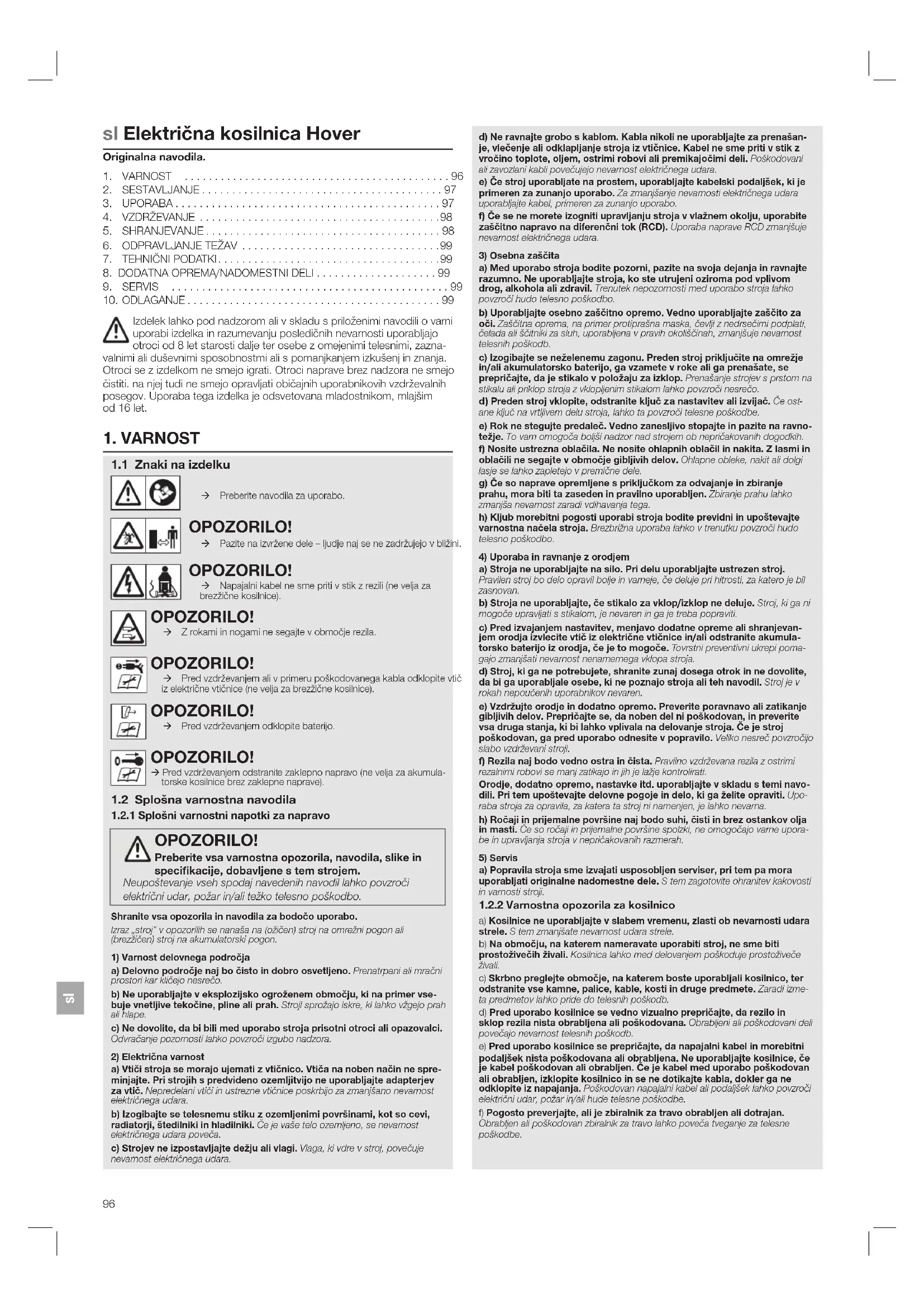 1.2.2 Varnostna opozorila za kosilnico