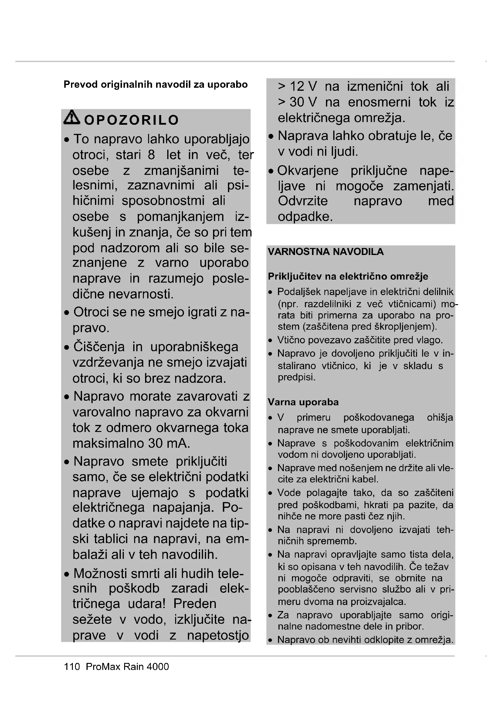 Pravilna uporaba Napravo ProMax Rain 4000 uporabljajte samo tako, kot je navedeno: