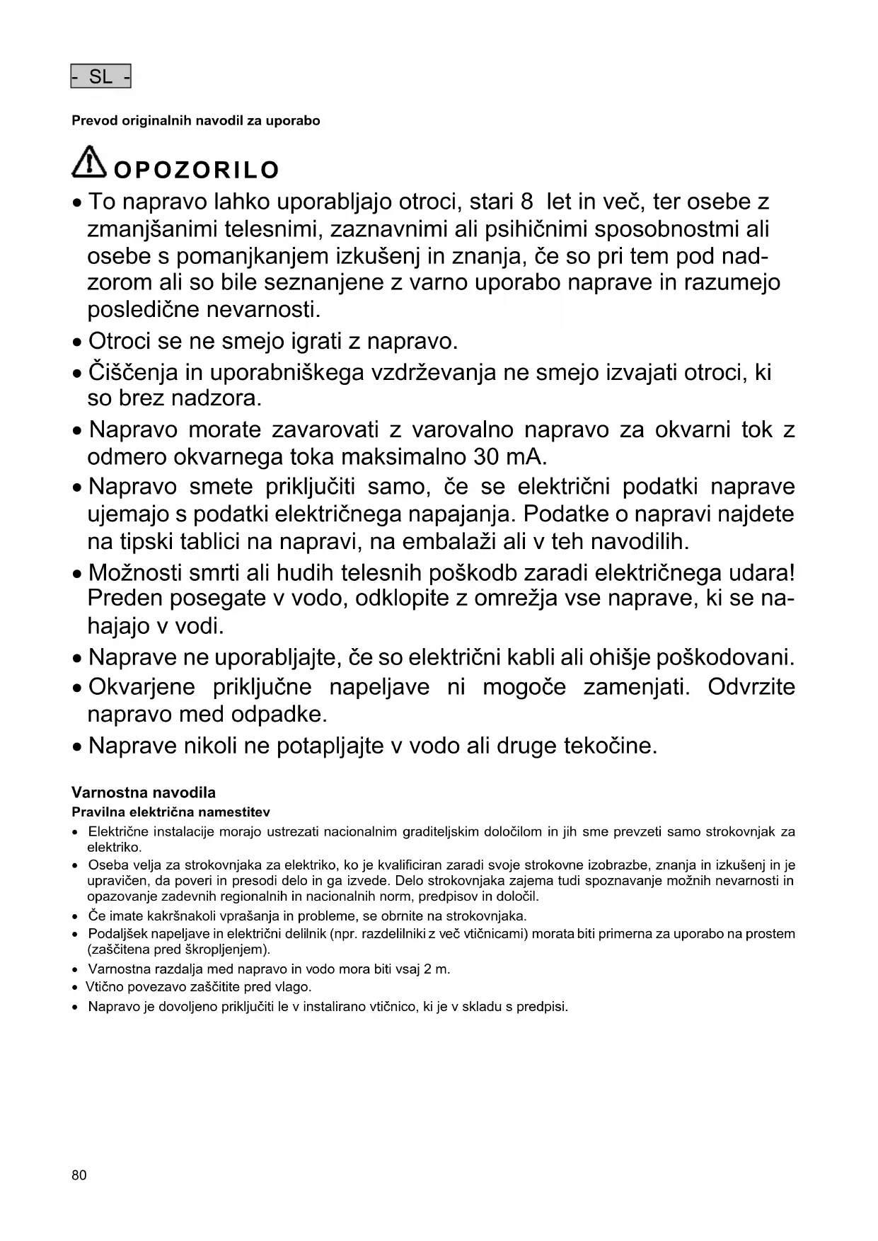 - Preden sežete v vodo, odklopite iz omrežne napetosti vse v vodi nahajajoče se naprave.