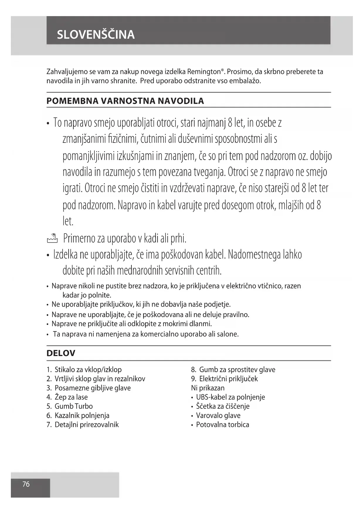 - Ta naprava ni namenjena za komercialno uporabo ali salone. DELOV