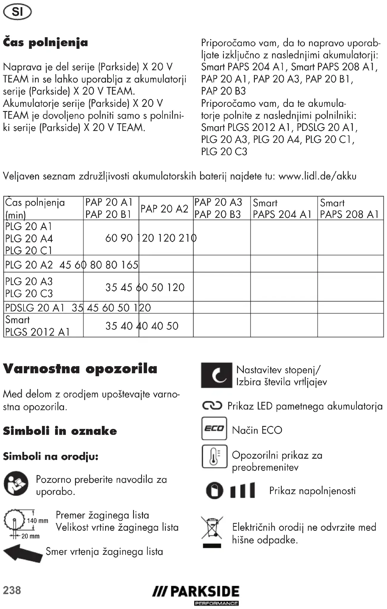 NAVODILA ZA UPORABO PPTSA 20Li A1 PARKSIDE