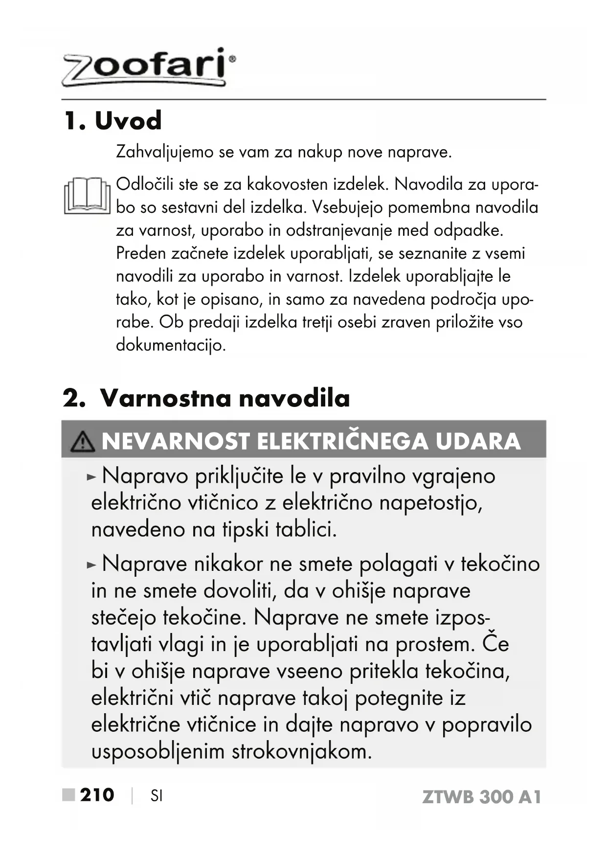 NAVODILA ZA UPORABO ZTWB 300 A1 ZOOFARI