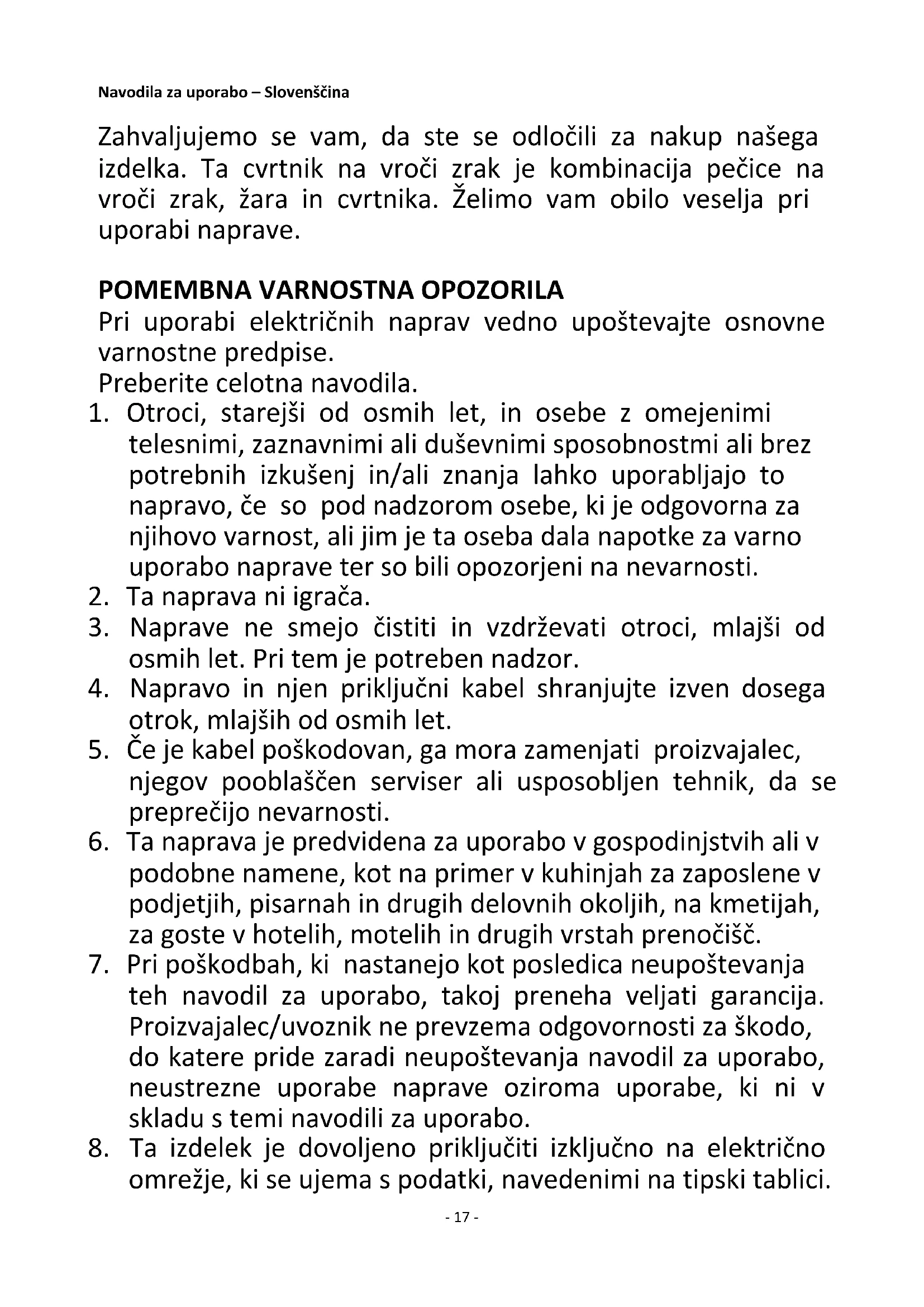 Pri uporabi električnih naprav vedno upoštevajte osnovne varnostne predpise. Preberite celotna navodila.