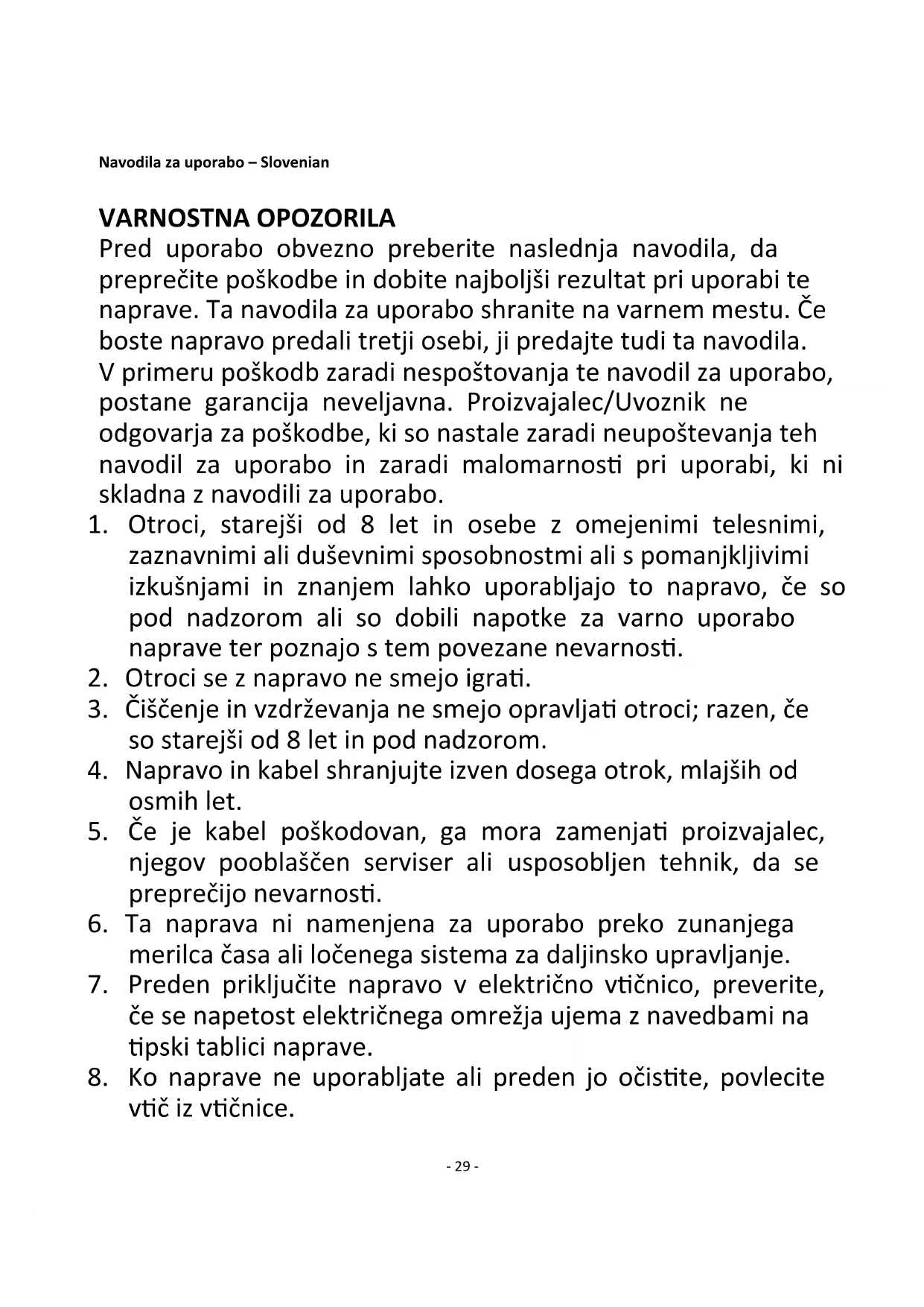 5. Če je kabel poškodovan, ga mora zamenjati proizvajalec,