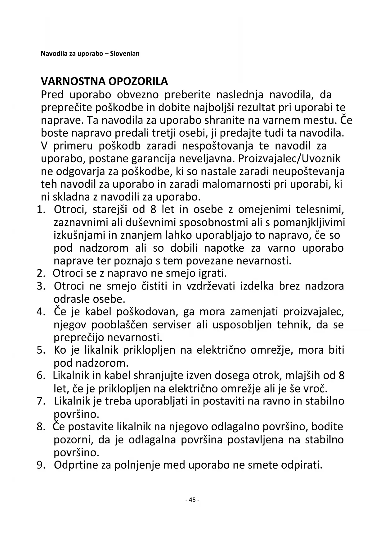 3. Otroci ne smejo čistiti in vzdrževati izdelka brez nadzora