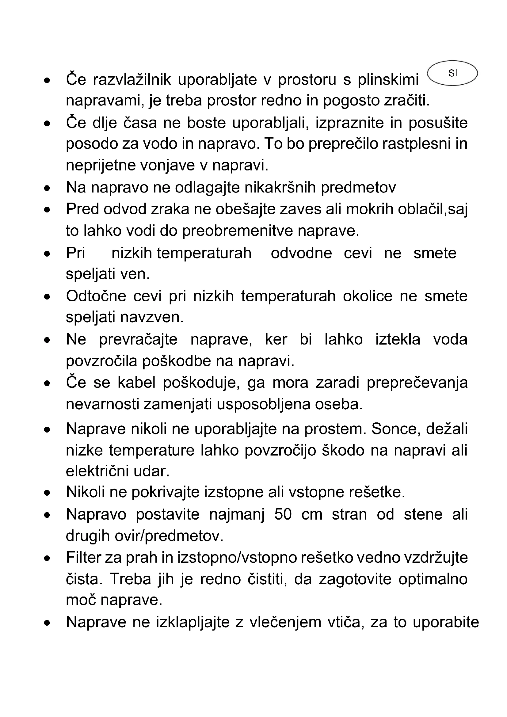 - Pred odvod zraka ne obešajte zaves ali mokrih oblačil, saj to lahko vodi do preobremenitve naprave.
