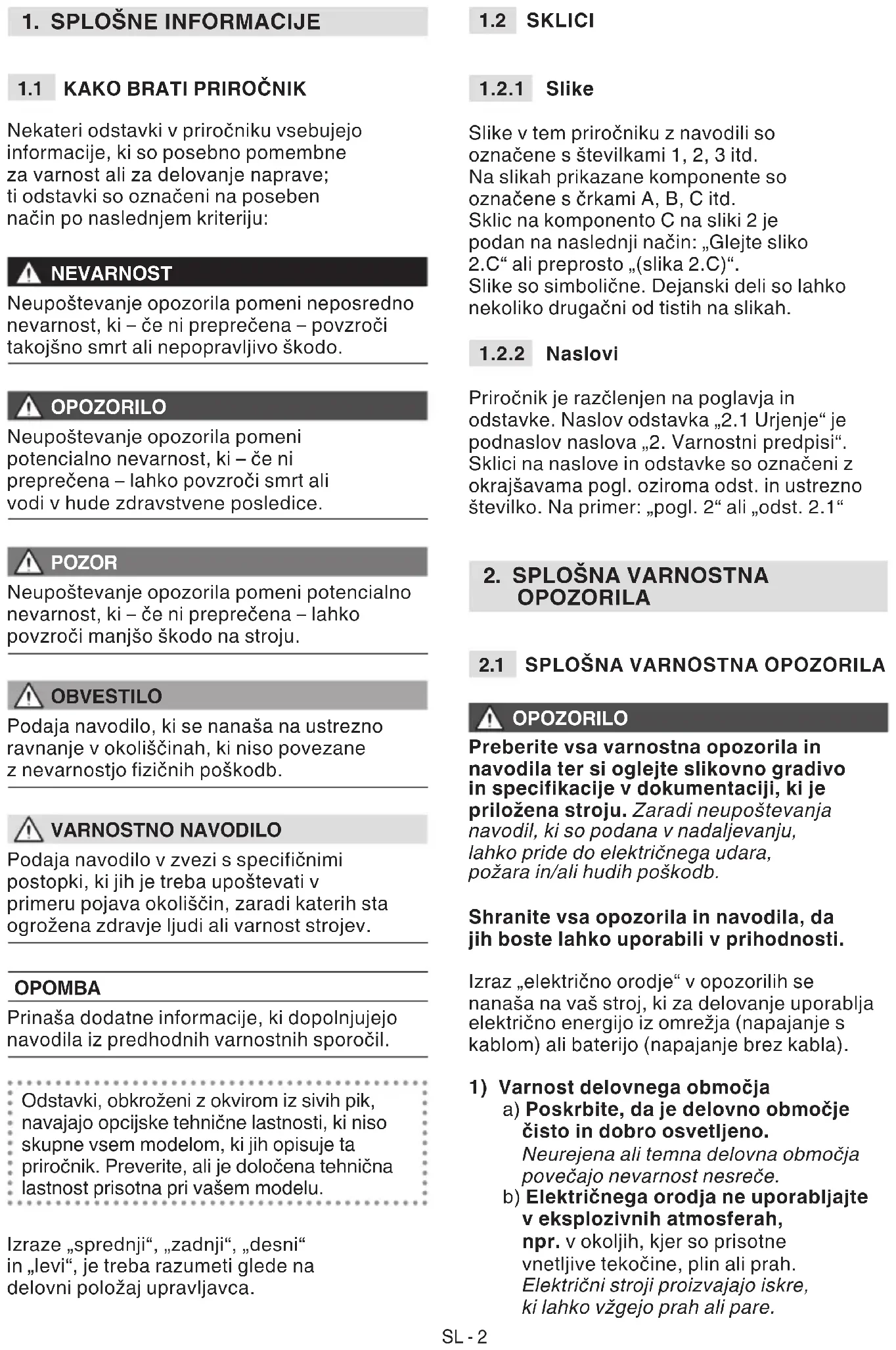 - Poskrbite, da se na delovnem območju ne zadržujejo odrasleSL - 6 osebe, otroci in živali. Otroke mora nadzorovati druga odrasla oseba.