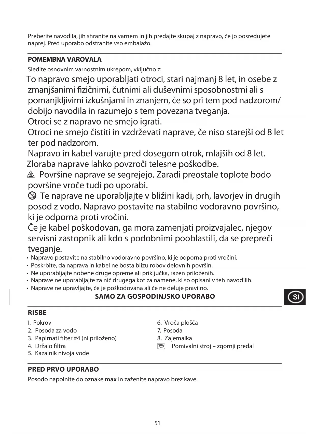 - Naprave ne uporabljajte za nič drugega kot za namene, ki so opisani v teh navodilih.
