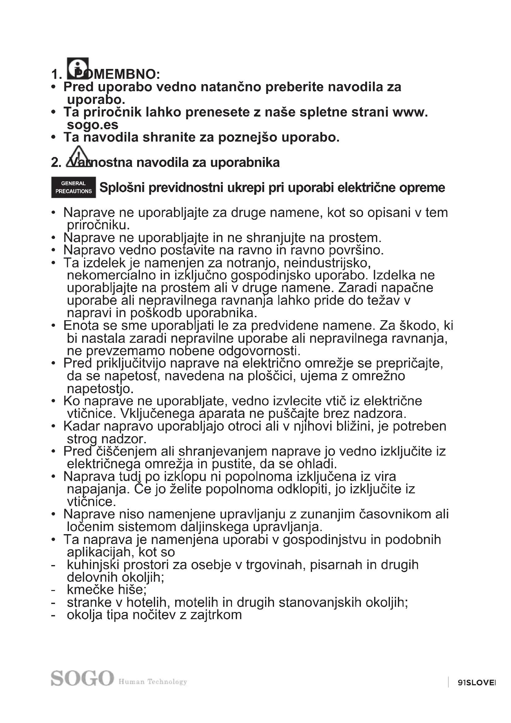 2. Varnostna navodila za uporabnika