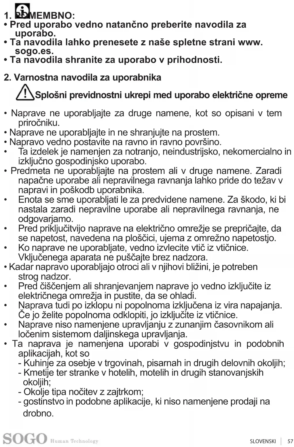 - Ta navodila lahko prenesete z naše spletne strani www. sogo.es.