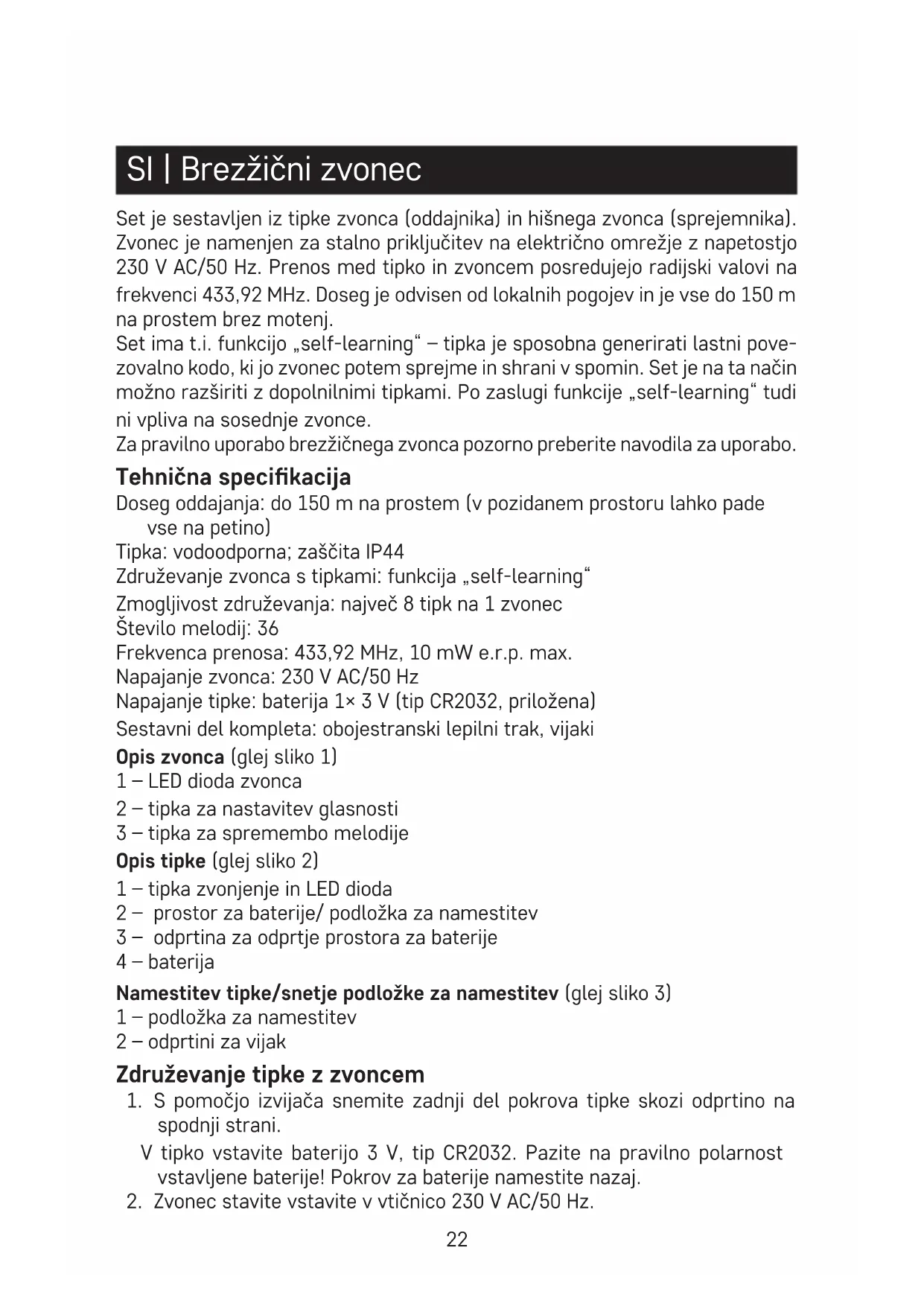 - Občasno preverite delovanje tipke zvonca in baterije pravočasno zamenjaj- te. Uporabljajte le kakovostne alkalne baterije s predpisanimi parametri.25
