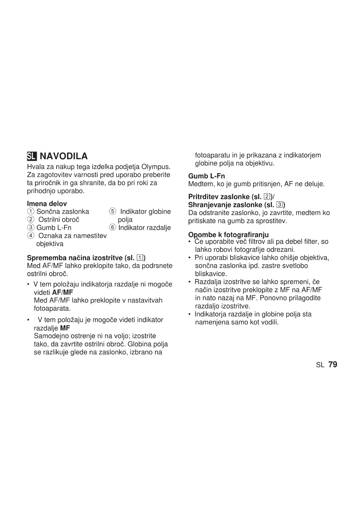 NAVODILA ZA UPORABO ED 25mm F1.2 PRO OLYMPUS