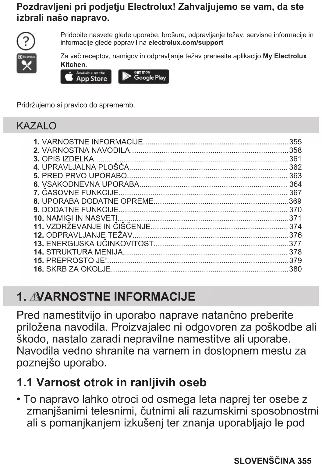 - To napravo lahko otroci od osmega leta naprej ter osebe z zmanjšanimi telesnimi, čutnimi ali razumskimi sposobnostmi ali s pomanjkanjem izkušenj ter znanja uporabljajo le pod SLOVENŠČINA 355nadzorom ali če so dobile ustrezna navodila glede varne uporabe naprave in če se zavedajo nevarnosti, ki obstajajo. Otroci, mlajši od osem (8) let, ter osebe z visoko stopnjo invalidnosti se ne smejo približevati napravi, če niso pod nenehnim nadzorom.