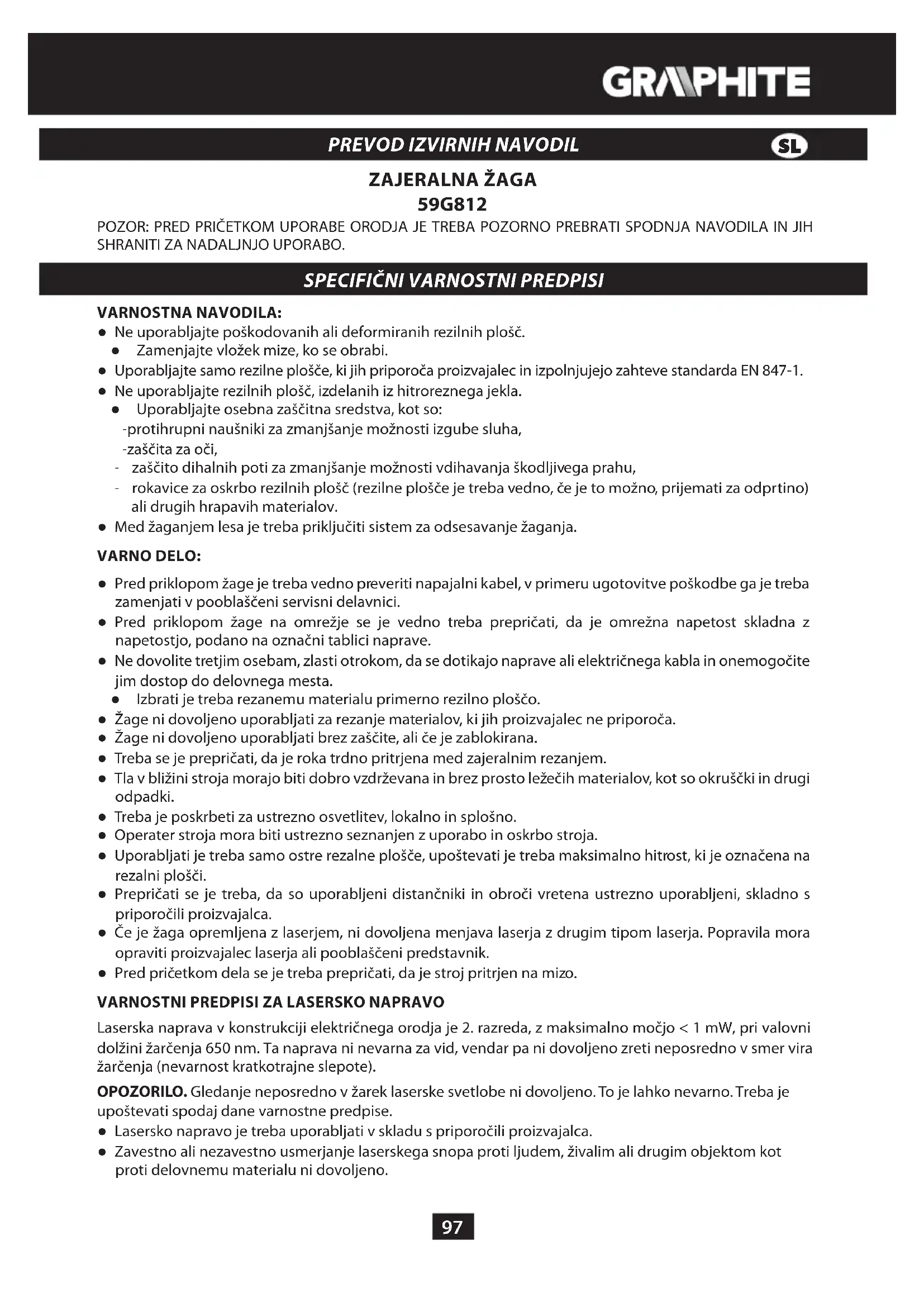 59G812 - Žaga Graphite - Brezplačna navodila za uporabo