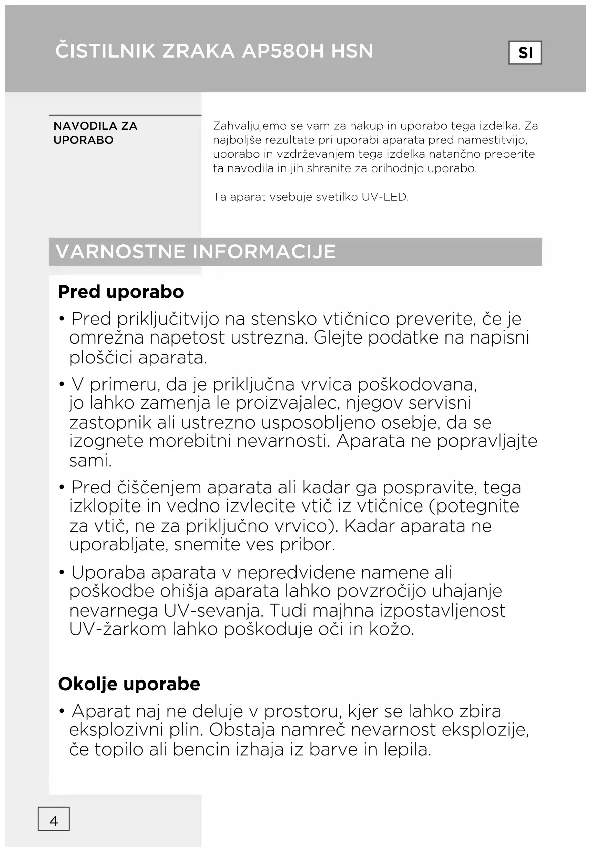 NAVODILA ZA UPORABO AP580H HISENSE
