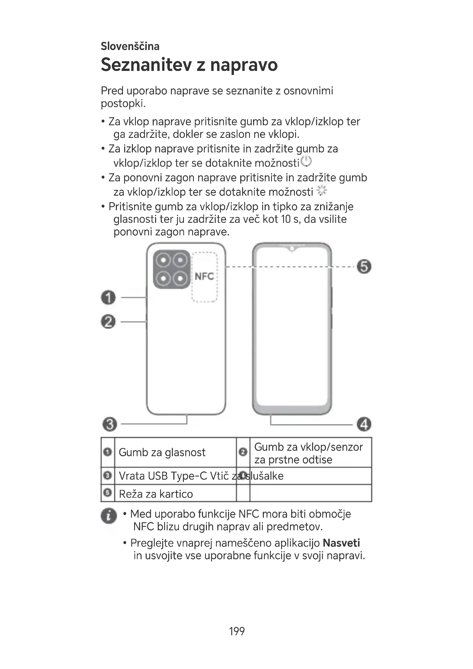 - Preglejte vnaprej nameščeno aplikacijo Nasveti in usvojite vse uporabne funkcije v svoji napravi. 199Uvod