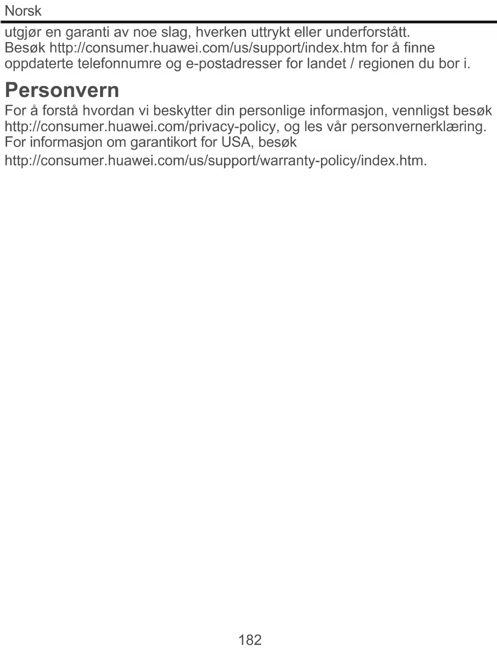 družba Huawei Technologies Co., Ltd. ni izrecno odobrila združljivosti, lahko razveljavijo uporabnikovo pravico do uporabe opreme. Pravna izjava Copyright © Huawei Technologies Co., Ltd. 2018. Vse pravice pridržane. Informacije v tem dokumentu so zgolj informativne. Nobene informacije v tem priročniku ne predstavljajo kakršnega koli izrecnega ali naznačenega jamstva. Vse slike in risbe v tem priročniku, vključno z barvo in velikostjo izdelka ter vsebino, prikazano na zaslonih, vendar ne omejeno nanje, so zgolj informativne. Dejanski izdelek se lahko razlikuje. Nobene informacije v tem priročniku ne predstavljajo kakršnega koli izrecnega ali naznačenega jamstva. Obiščite spletno mesto http://consumer.huawei.com/us/support/index.htm, kjer boste našli najnovejšo telefonsko številko odprte linije in e-poštni naslov za svojo državo ali regijo. Varstvo zasebnosti Če želite preveriti, kako ščitimo vaše osebne podatke, obiščite spletno mesto http://consumer.huawei.com/privacy-policy in preberite naš pravilnik o zasebnosti. Za ogled garancijske kartice za ZDA obiščite spletno mesto http://consumer.huawei.com/us/support/warranty-policy/index.htm.Svenska