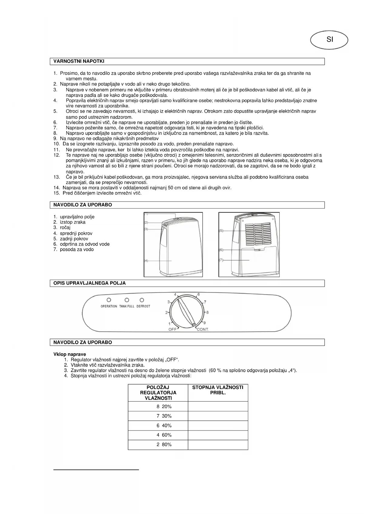 8. Napravo uporabljajte samo v gospodinjstvu in izključno za namembnost, za katero je bila razvita.