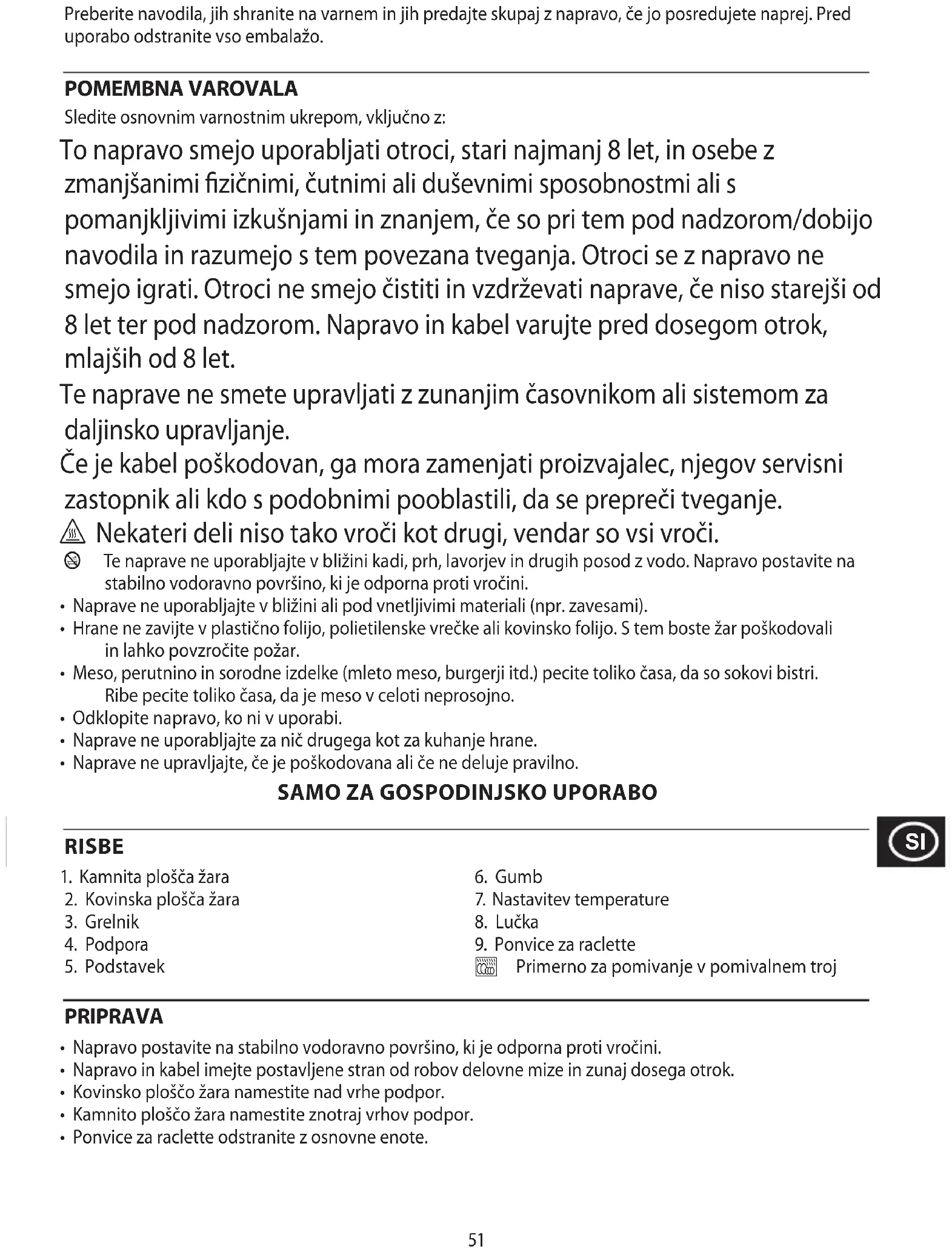 - Naprave ne uporabljajte za nič drugega kot za kuhanje hrane.