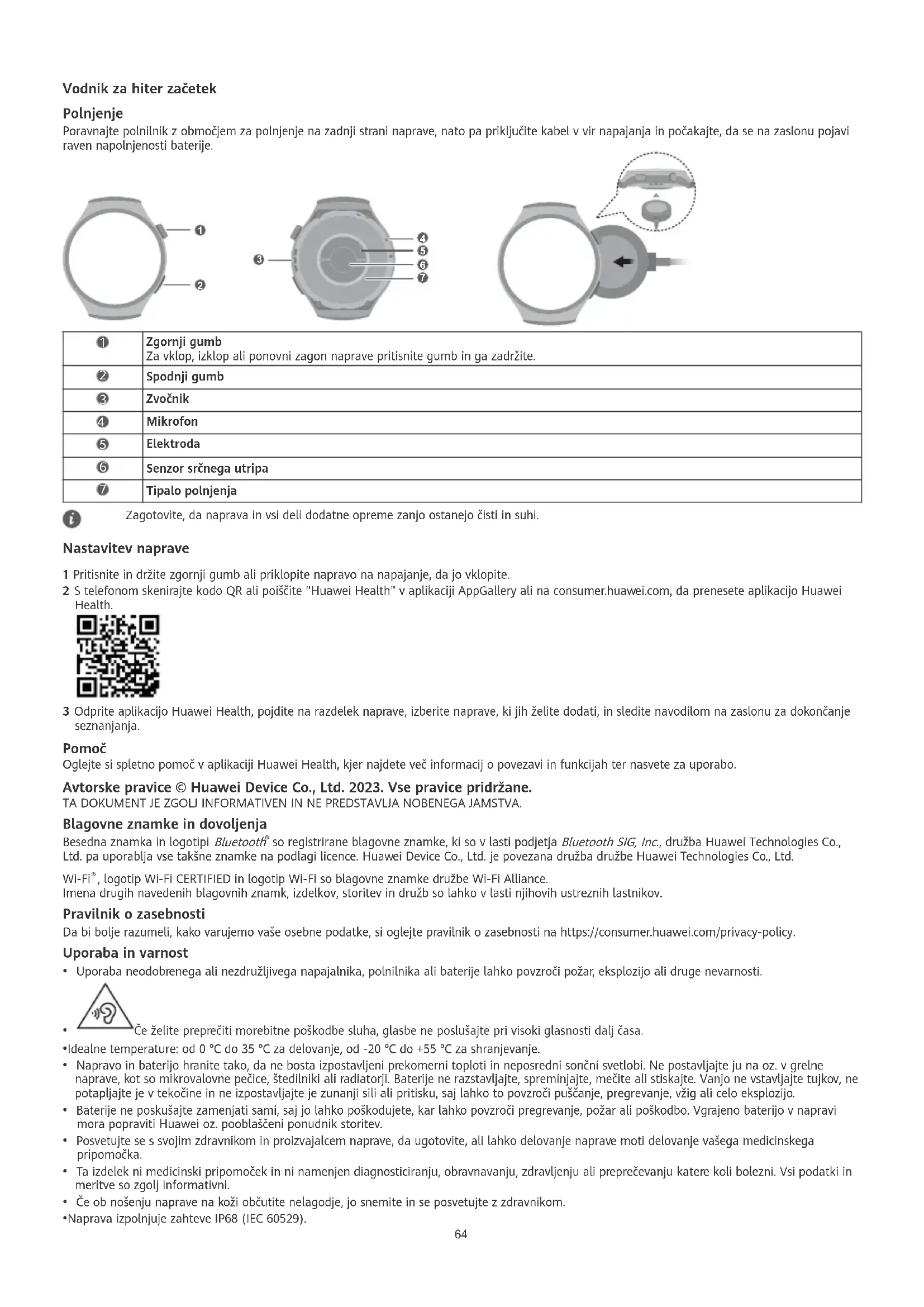 , logotip Wi-Fi CERTIFIED in logotip Wi-Fi so blagovne znamke družbe Wi-Fi Alliance. Imena drugih navedenih blagovnih znamk, izdelkov, storitev in družb so lahko v lasti njihovih ustreznih lastnikov. Pravilnik o zasebnosti Da bi bolje razumeli, kako varujemo vaše osebne podatke, si oglejte pravilnik o zasebnosti na https://consumer.huawei.com/privacy-policy. Uporaba in varnost