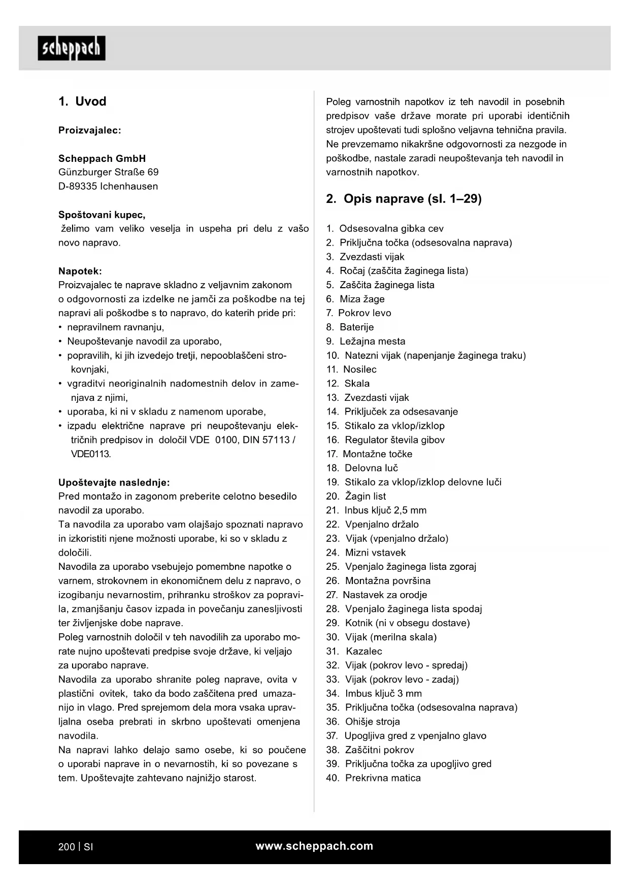 NAVODILA ZA UPORABO Deco Flex SL SCHEPPACH