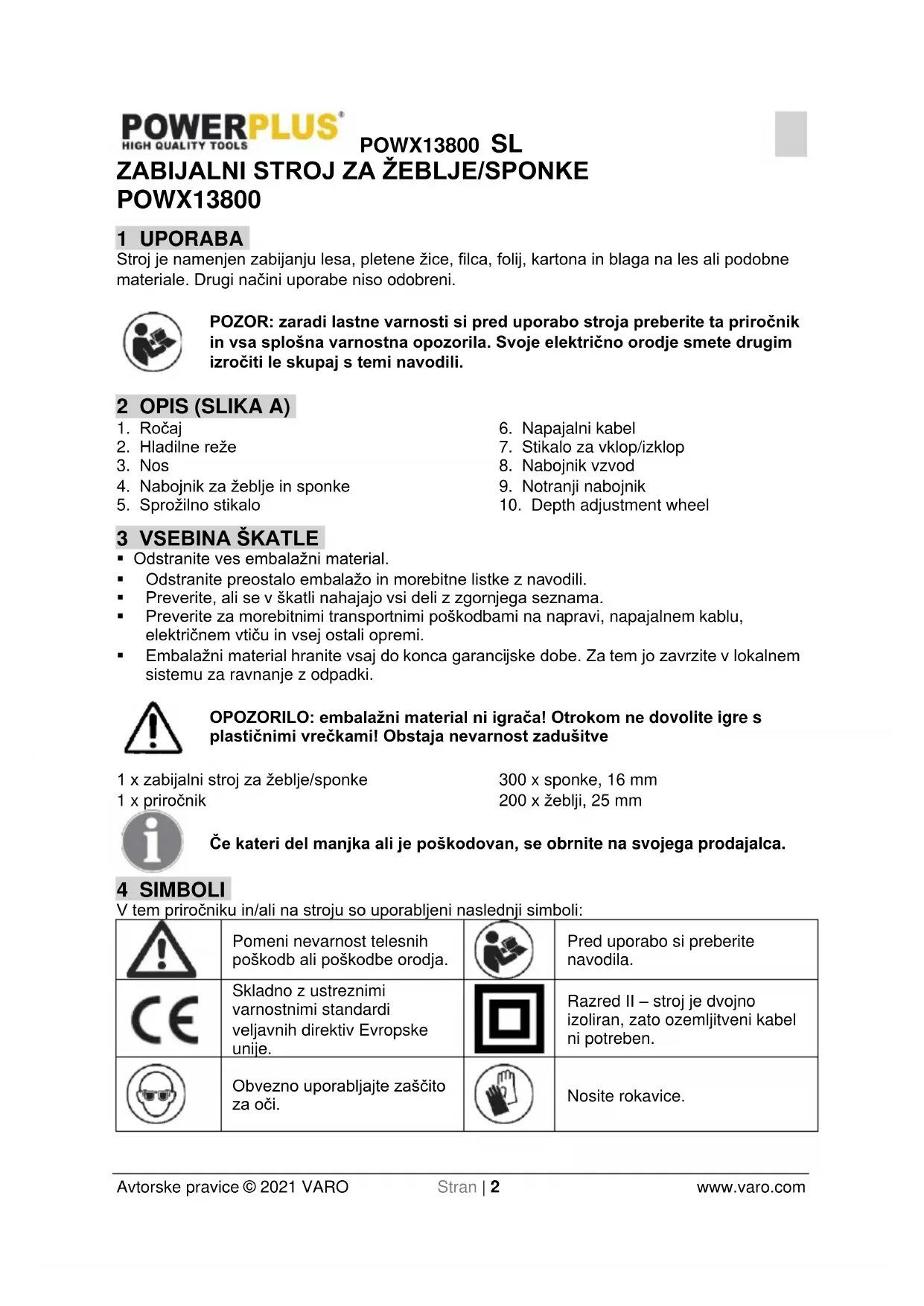 NAVODILA ZA UPORABO POWX13800 PowerPlus