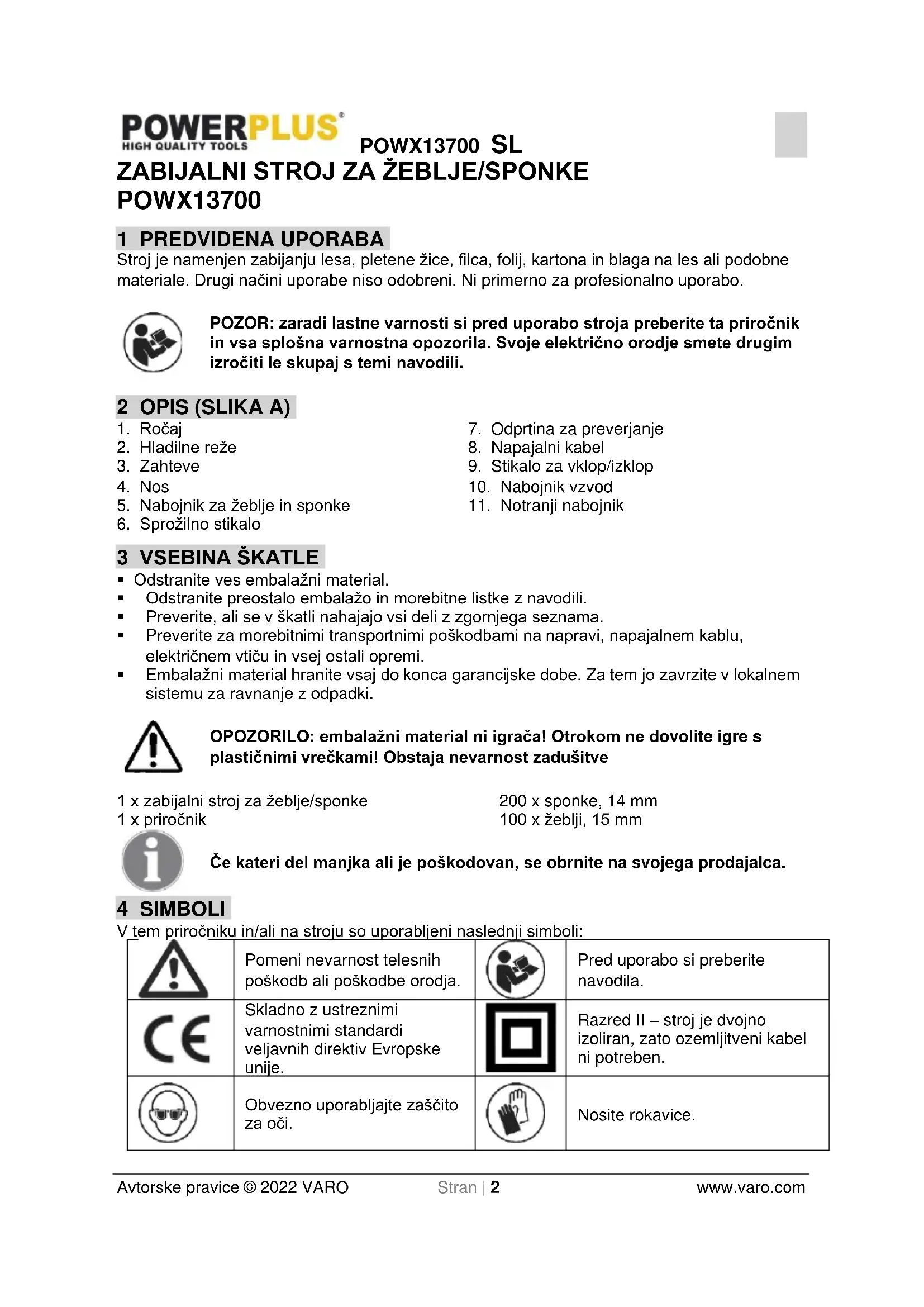 - Dokazilo o nakupu morate shraniti kot dokaz o datumu nakupa.POWX13700 SL Avtorske pravice © 2022 VARO Stran | 7 www.varo.com