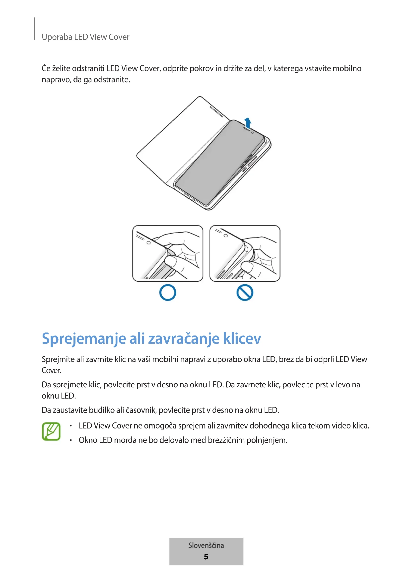 Okno LED morda ne bo delovalo med brezžičnim polnjenjem. Slovenščina 5Uporaba LED View Cover