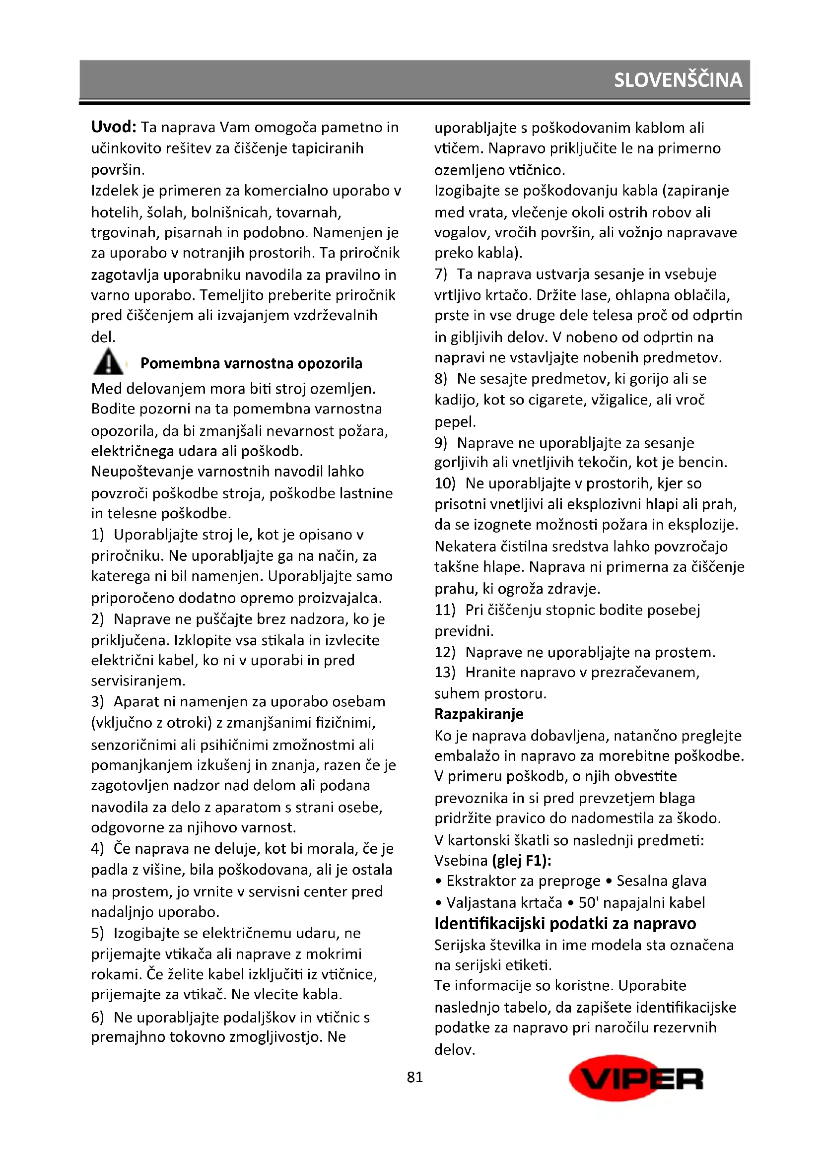 CEX410 - Sesalnik Viper - Brezplačna navodila za uporabo