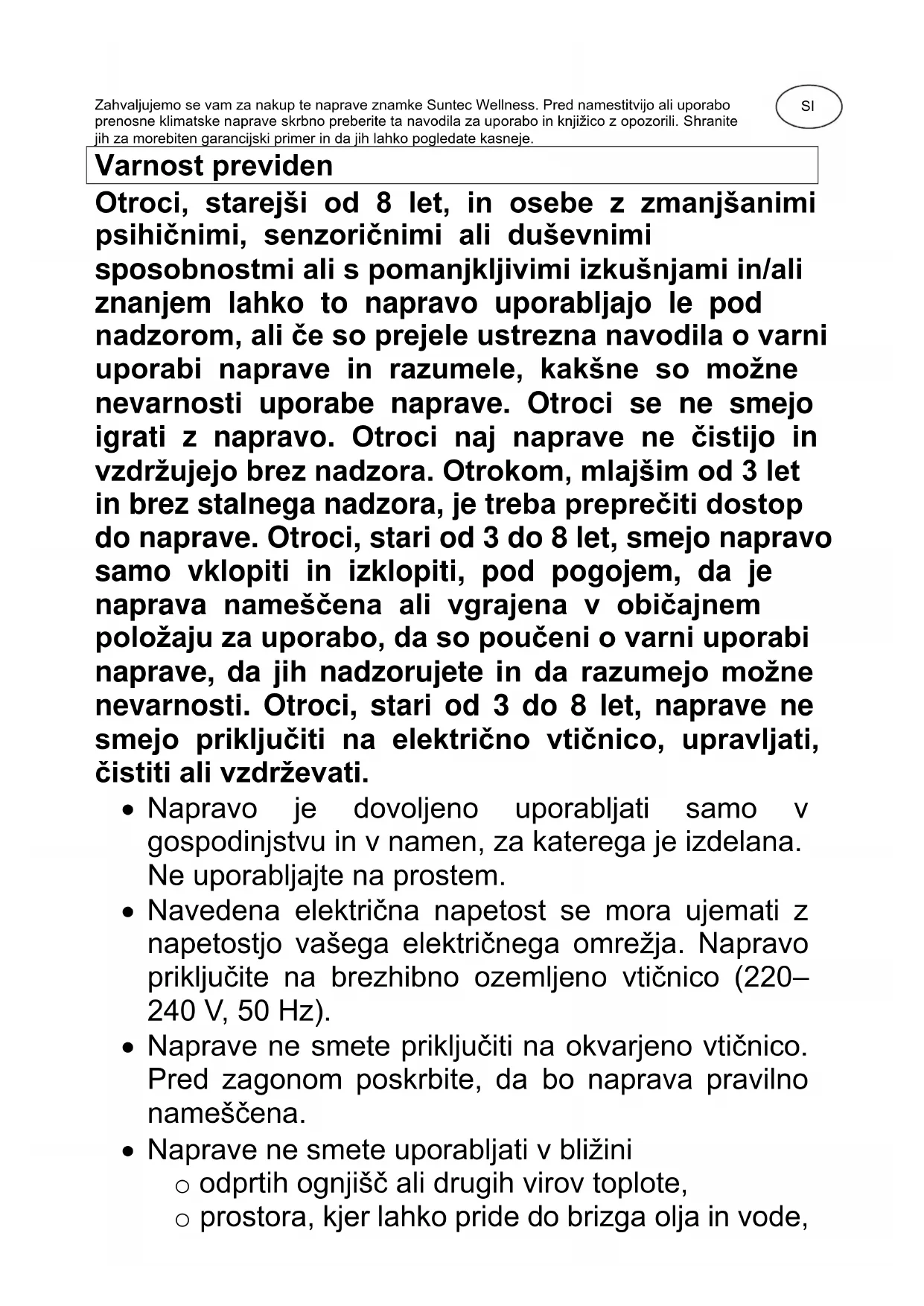 - Podjetje Suntec Wellness GmbH ne prevzema odgovornosti za škodo, do katere bi prišlo zaradi nepravilne uporabe ali neupoštevanja navodil za uporabo.