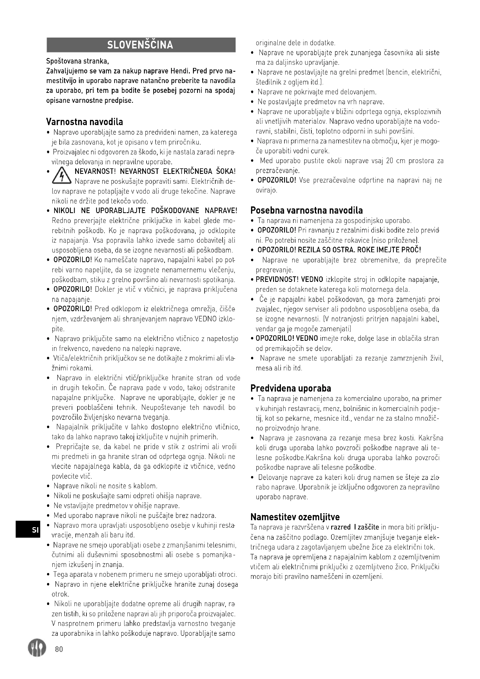 - Naprava je zasnovana za rezanje mesa brez kosti. Kakršna koli druga uporaba lahko povzroči poškodbe naprave ali te