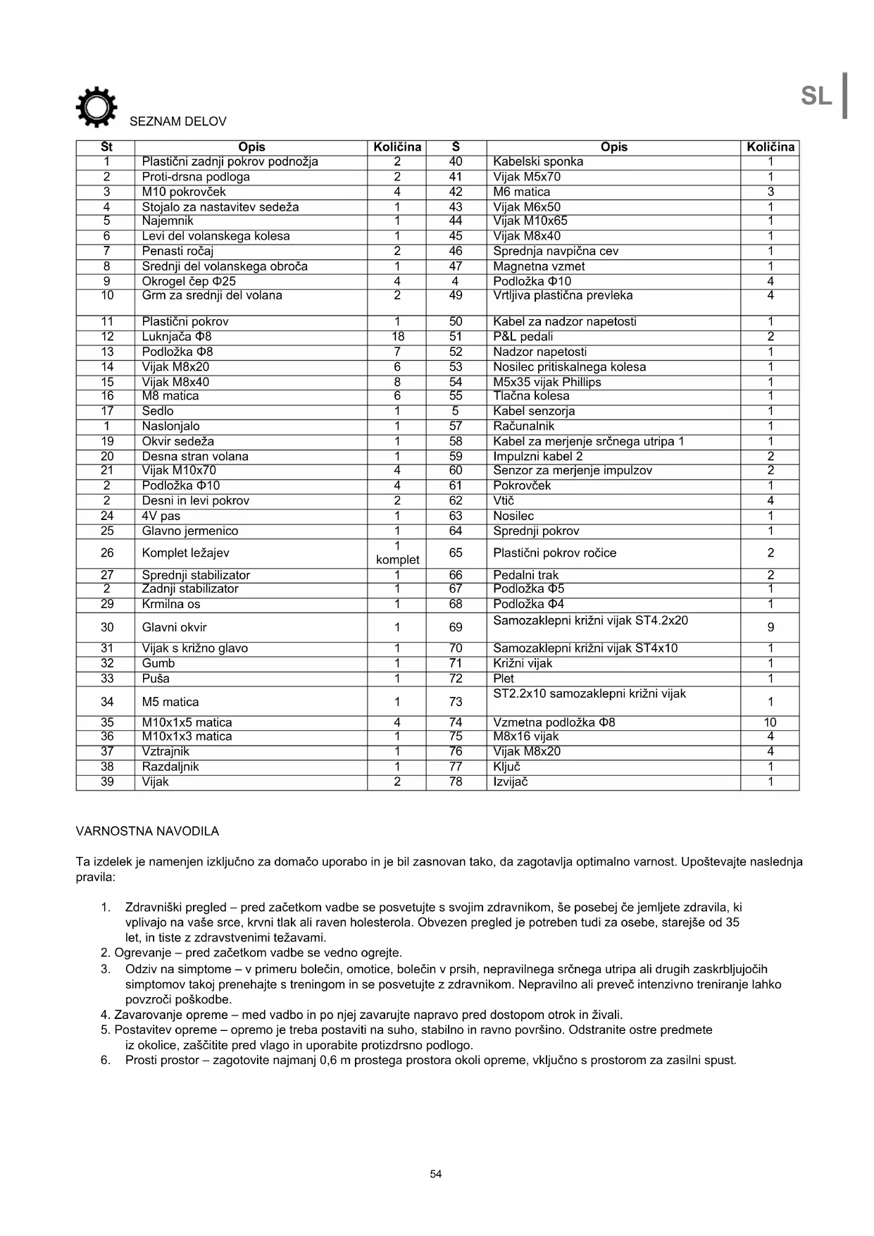 sestavljanjem preverite, ali so vsi deli prisotni. Opozorilo: Pred uporabo fitnes opreme preberite navodila. Proizvajalec ne odgovarja za poškodbe ali škodo, ki nastanejo zaradi nepravilne uporabe. Tehnični podatki
