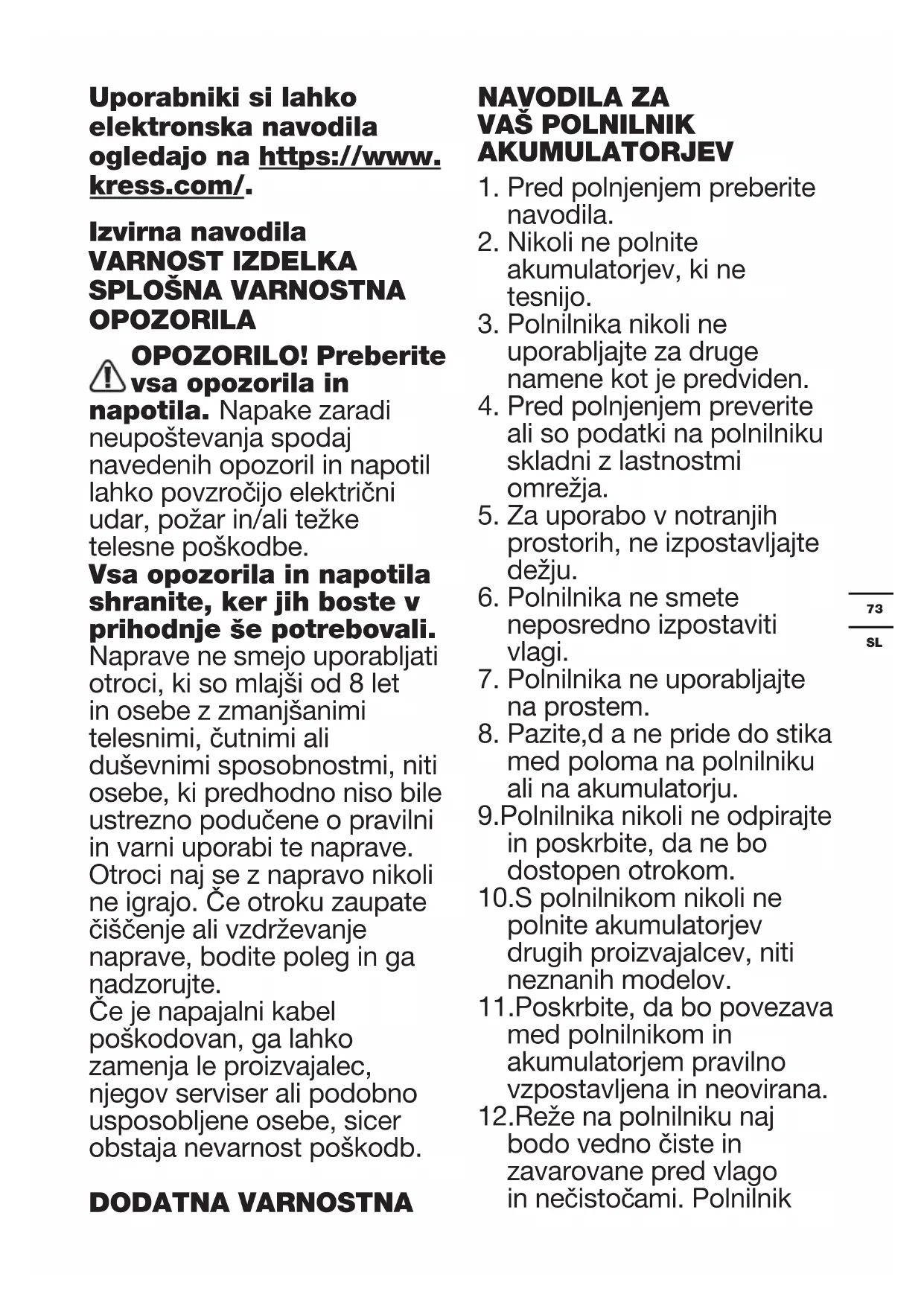 Uporabniki si lahko elektronska navodila ogledajo na https://www. kress.com/. Izvirna navodila VARNOST IZDELKA