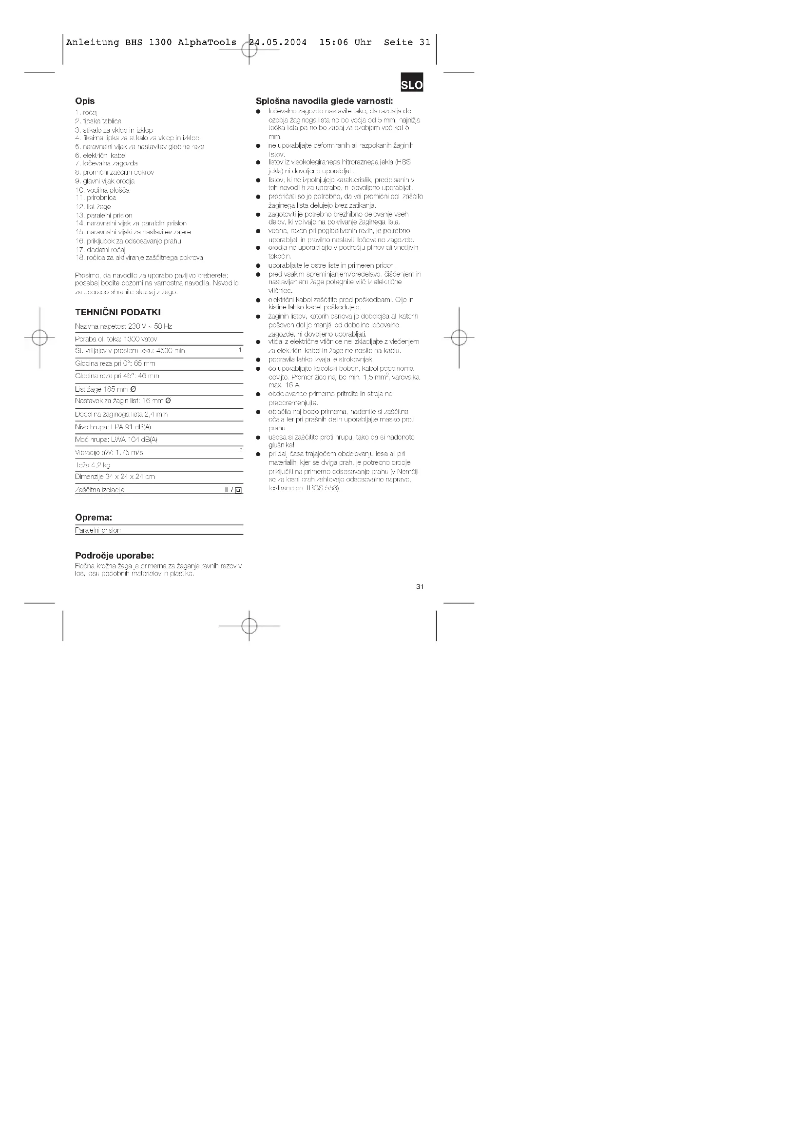 NAVODILA ZA UPORABO BHS 1300 Alpha Tools