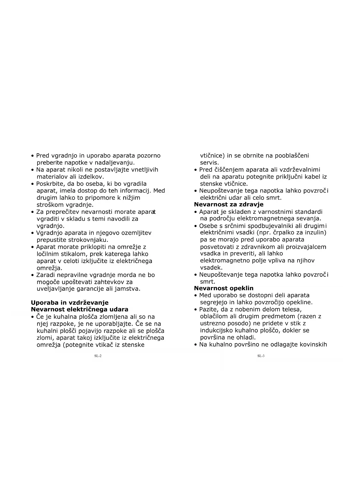 - Lahko se urežete ali kako drugače poškodujete. Pomembni varnostni napotkiSL-2