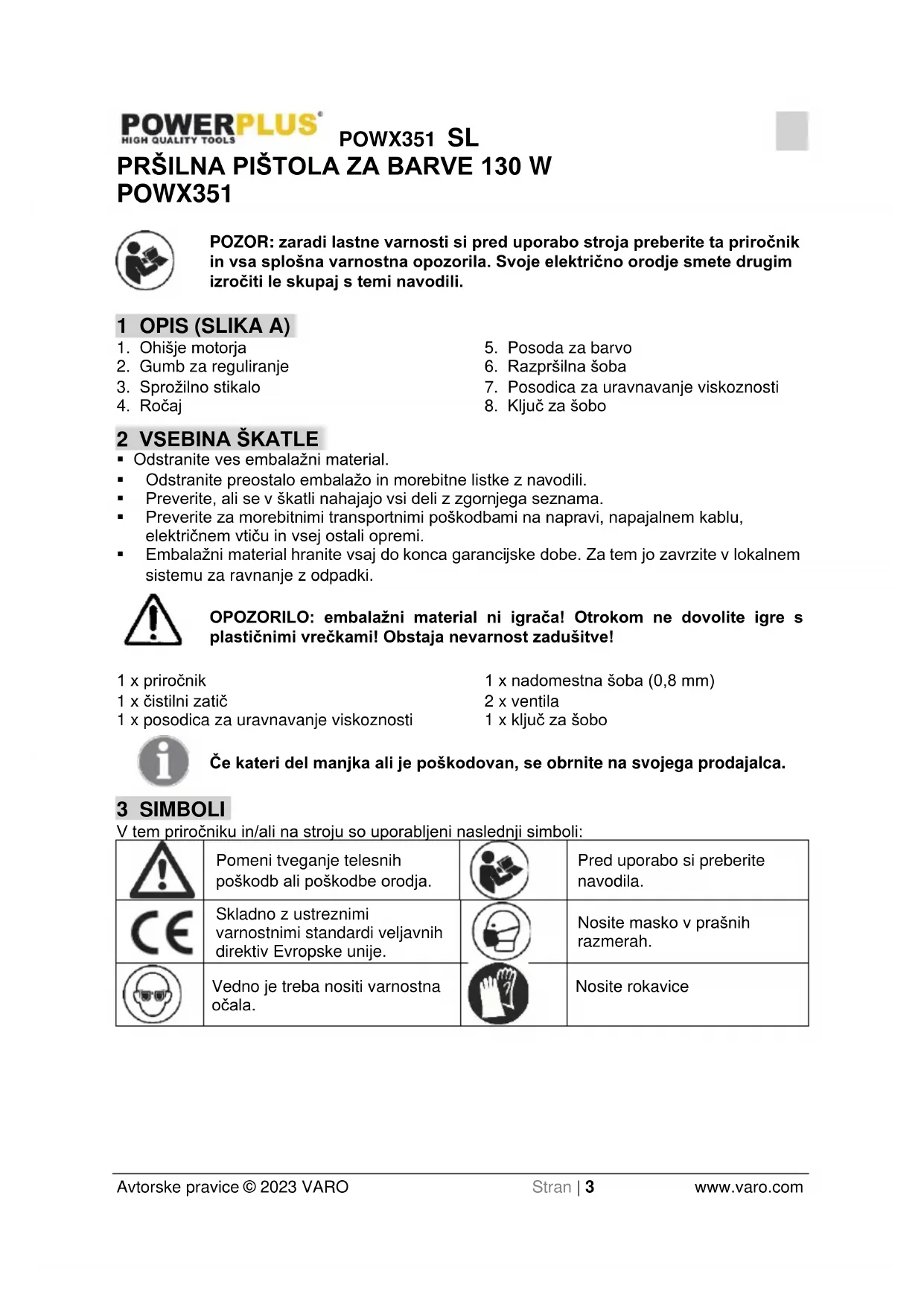 NAVODILA ZA UPORABO POWX351 PowerPlus