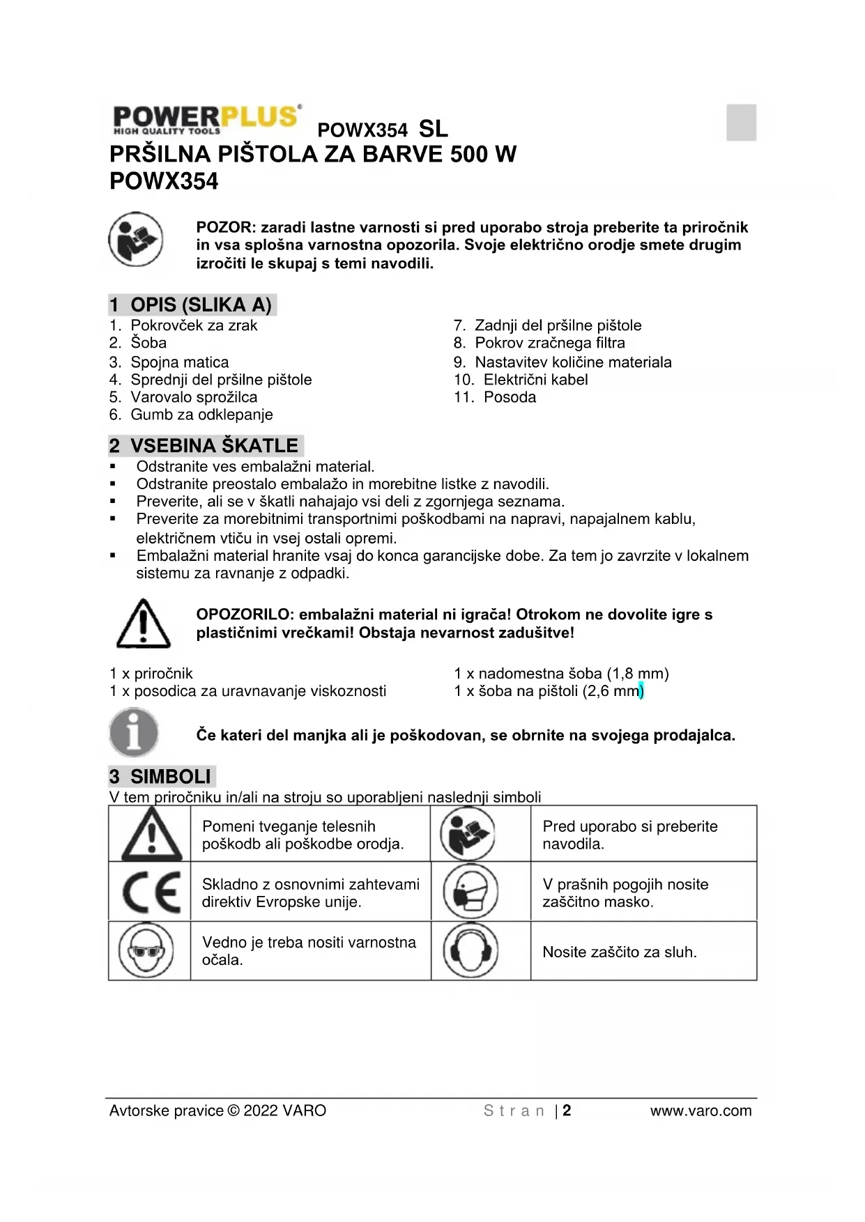 NAVODILA ZA UPORABO POWX354 PowerPlus
