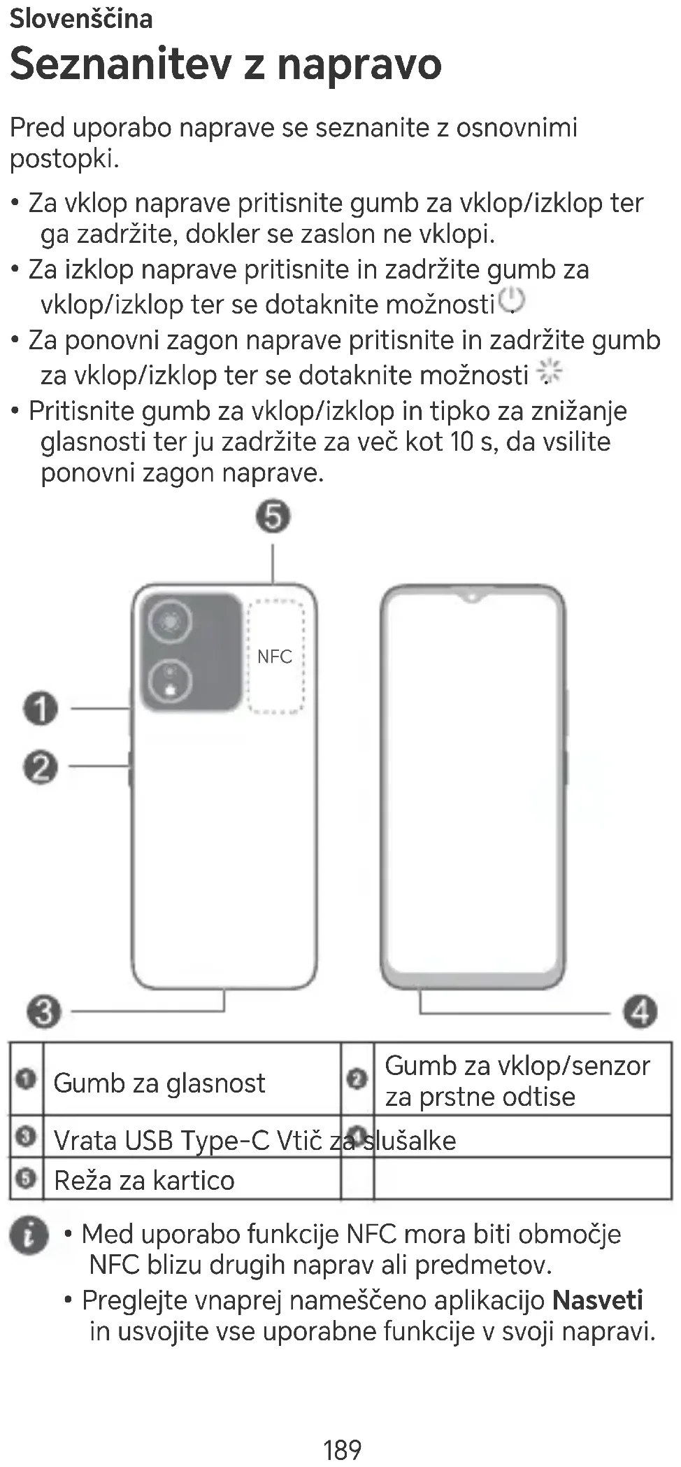 - Preglejte vnaprej nameščeno aplikacijo Nasveti in usvojite vse uporabne funkcije v svoji napravi. 189Uvod