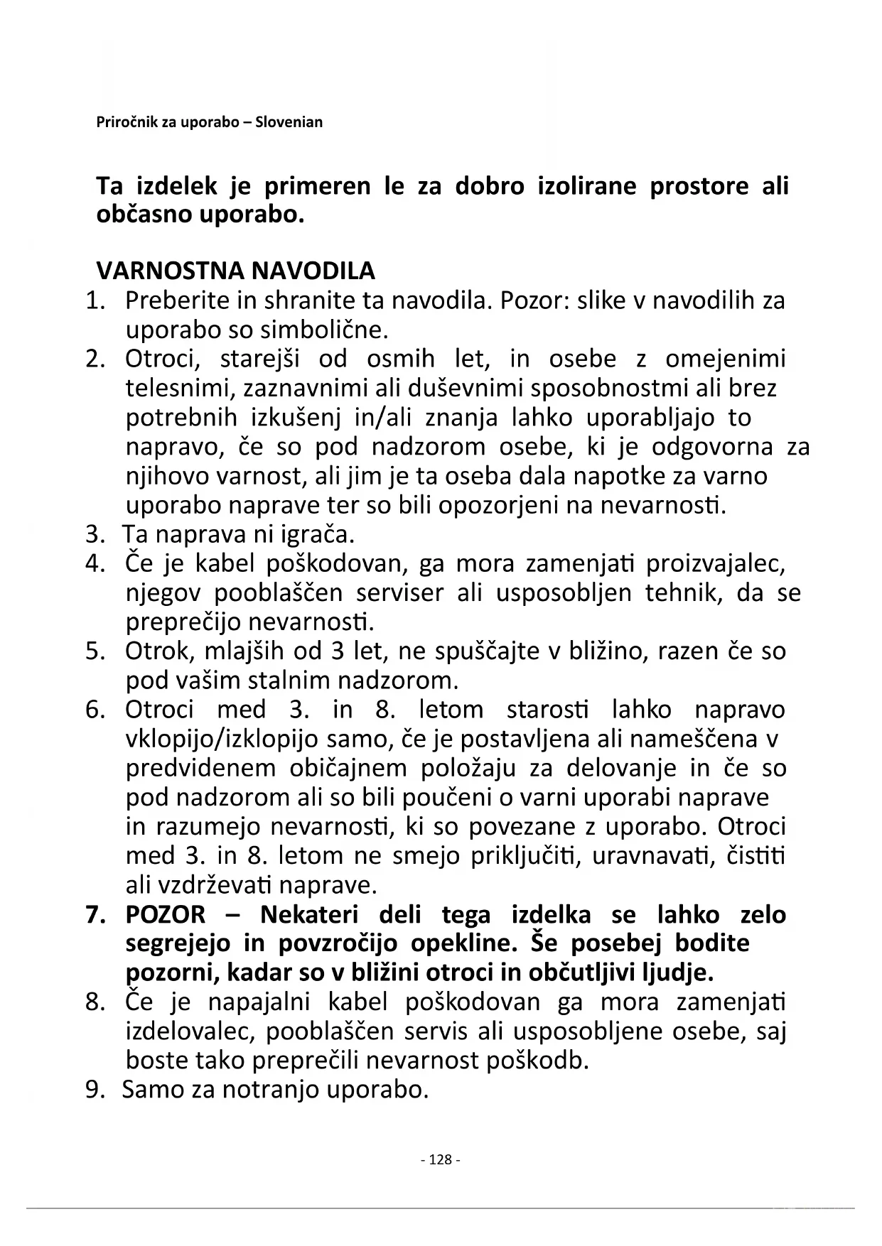 7. POZOR – Nekateri deli tega izdelka se lahko zelo