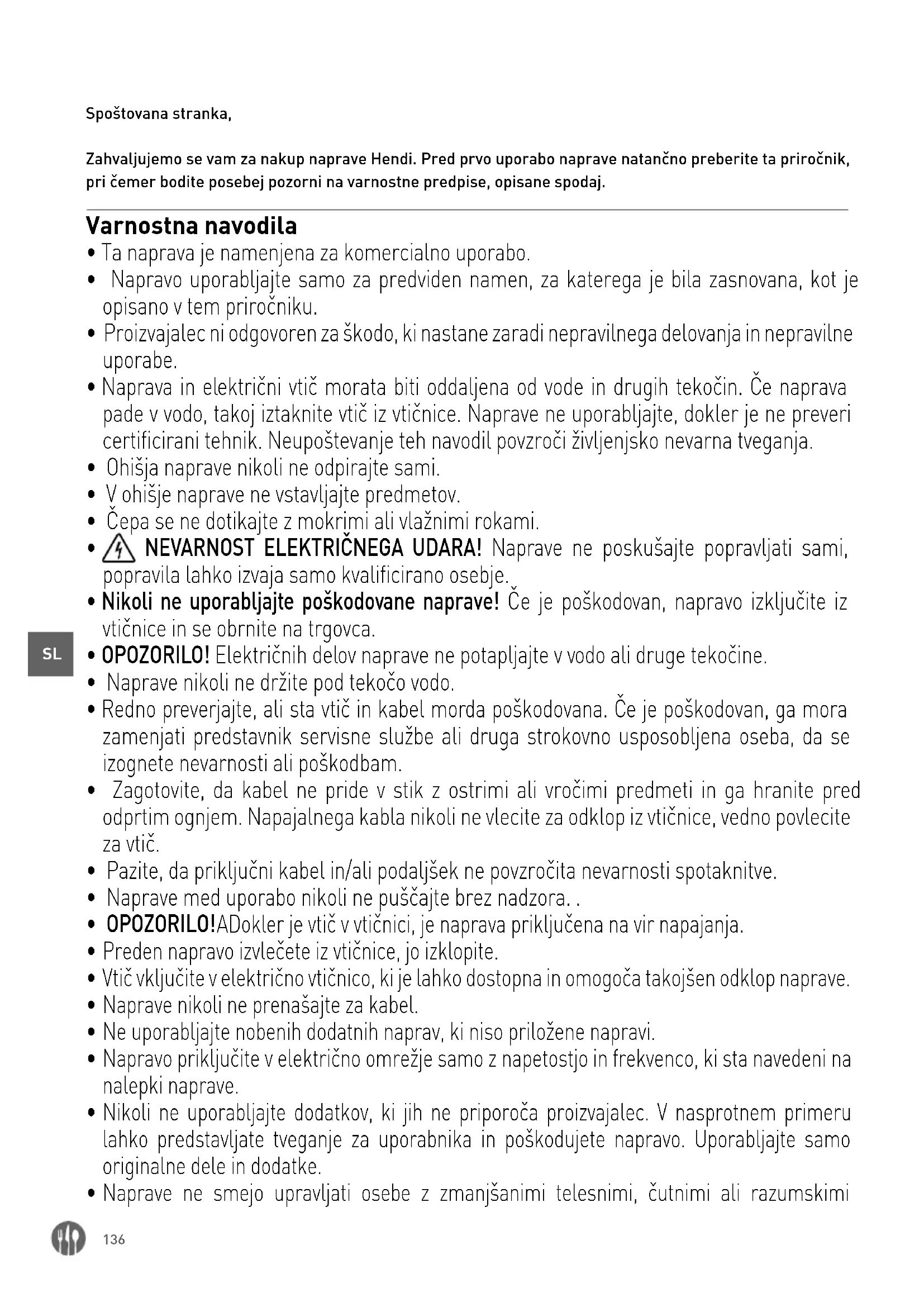 Spoštovana stranka, Zahvaljujemo se vam za nakup naprave Hendi. Pred prvo uporabo naprave natančno preberite ta priročnik, pri čemer bodite posebej pozorni na varnostne predpise, opisane spodaj. Varnostna navodila