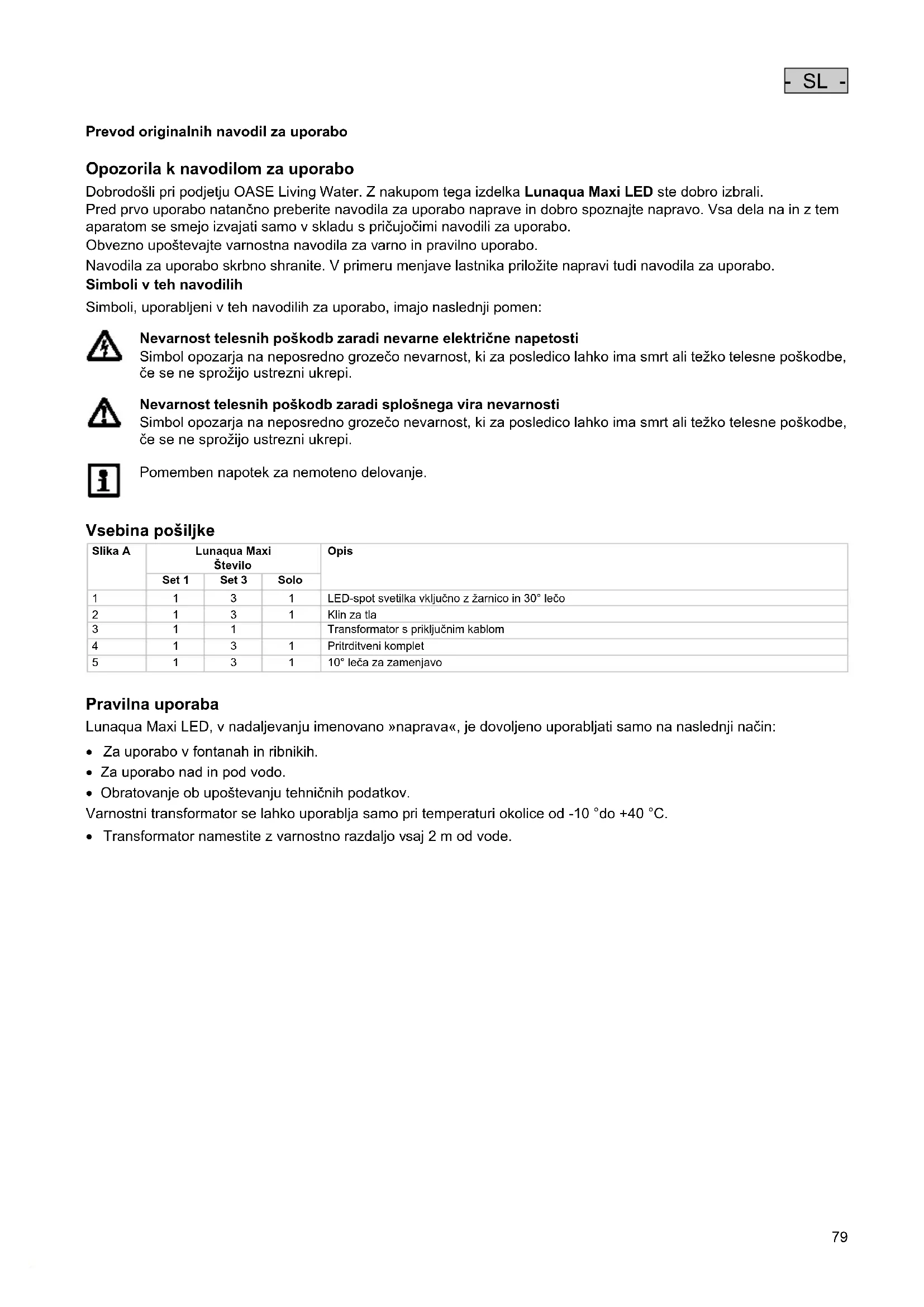 Pravilna uporaba Lunaqua Maxi LED, v nadaljevanju imenovano »naprava«, je dovoljeno uporabljati samo na naslednji način: