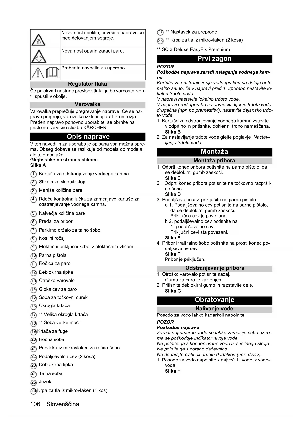 NAVODILA ZA UPORABO SC 3 Deluxe EasyFix Premium Kärcher