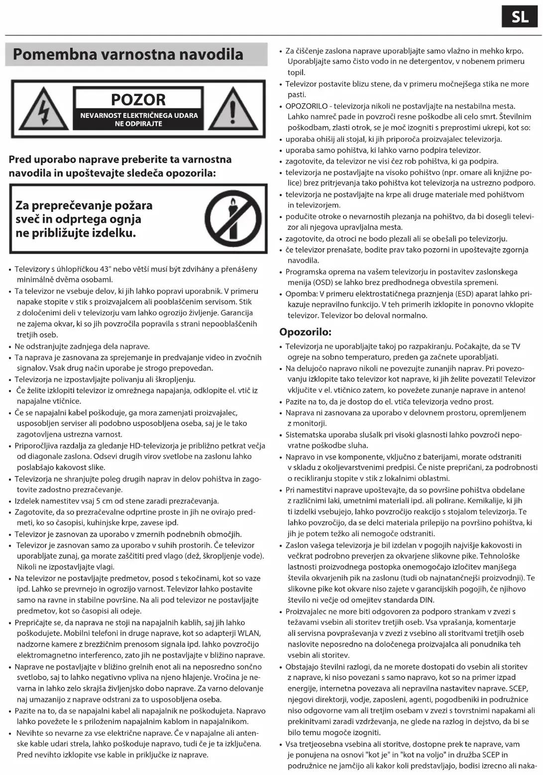 - OPOZORILO - televizorja nikoli ne postavljajte na nestabilna mesta. Lahko namreč pade in povzroči resne poškodbe ali celo smrt. Številnim poškodbam, zlasti otrok, se je moč izogniti s preprostimi ukrepi, kot so: